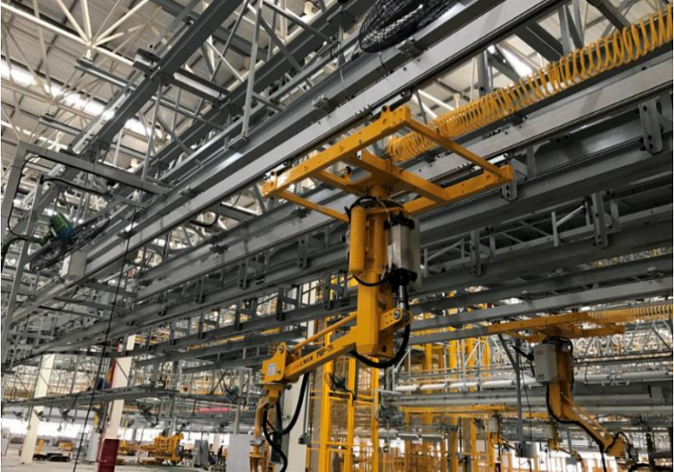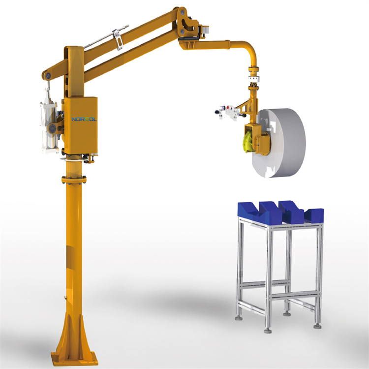 助力機械手,又稱機械手、平衡吊、平衡助力器、手動移載機(以上說法并不專業(yè)但國內已經流行),是一種新穎的、用于物料搬運及安裝時省力操作的助力設備。它巧妙地應用力的平衡原理,使操作者對重物進行相應的推拉,就可在空間內平衡移動定位。重物在提升或下降時形成浮動狀態(tài),靠氣路保證零操作力(實際情況因為加工工藝及設計成本控制,操作力以小于3kg為判斷標準)操作力受工件重量影響。無需熟練的點動操作,操作者用手推拉重物,就可以把重物正確地放到空間中的任何位置。