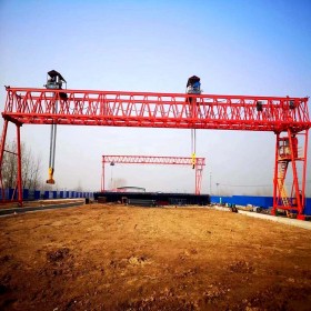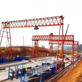 提梁機(jī)是一種為橋梁建設(shè)而專門設(shè)計(jì)的一種門式起重機(jī)。提梁機(jī)主要由拼裝式主梁、支腿、天車等組成,構(gòu)件間采用銷軸及高強(qiáng)螺栓連接,易于拆裝、運(yùn)輸;與普通門式起重機(jī)相比,安裝方便快捷,經(jīng)濟(jì)實(shí)用。適用于經(jīng)常流動(dòng)的道路橋梁建設(shè)單位 提梁機(jī)既可兩臺(tái)配合抬吊預(yù)制梁,也可以單臺(tái)起重機(jī)配雙吊具起吊預(yù)制梁,兩臺(tái)同時(shí)起重的提梁機(jī)各自的起重量一般為450噸,單臺(tái)起重的提梁機(jī)起重量通??蛇_(dá)900噸。它配置支腿行走、天車行走及天車起吊設(shè)備,可以實(shí)現(xiàn)機(jī)械化動(dòng)作。主要用于將預(yù)制梁從制梁臺(tái)提吊至存梁臺(tái)位,預(yù)制梁養(yǎng)護(hù)完成后將其從存梁臺(tái)位吊運(yùn)到運(yùn)梁車上。作為起重設(shè)備完成架橋機(jī)的組裝和拆卸。還用于架設(shè)墩身不高的旱橋。 1,提升機(jī)構(gòu)和運(yùn)行機(jī)構(gòu)運(yùn)行速度低,以提高預(yù)制梁對(duì)位精度和減少對(duì)提梁機(jī)結(jié)構(gòu)的沖擊。 2,提梁機(jī)內(nèi)部空間要足夠大,以滿足吊運(yùn)預(yù)制梁和架橋機(jī)的拼裝。 3,主體鋼結(jié)構(gòu)在滿足強(qiáng)度、剛度、穩(wěn)定性前提下,考慮拆裝運(yùn)輸。 4,采用兩臺(tái)吊運(yùn)預(yù)制梁時(shí)要滿足兩臺(tái)機(jī)子同步運(yùn)行(提梁機(jī)出租,重慶提梁機(jī)廠家,大型龍門吊,四川生產(chǎn)提梁機(jī)廠家)
