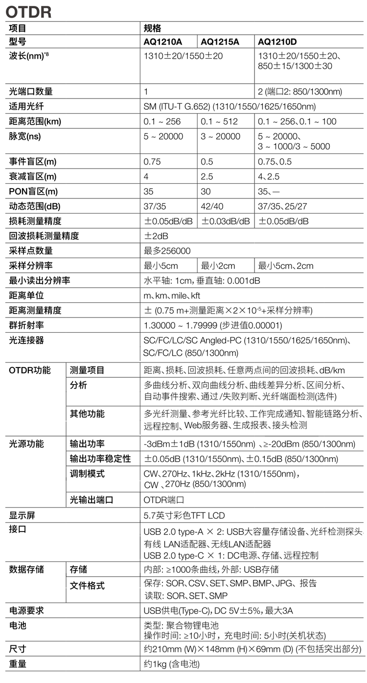 橫河AQ1210A光時域反射儀 AQ1200系列 進口光時域反射計