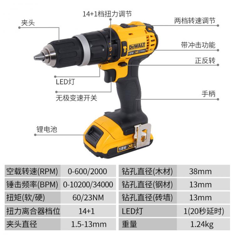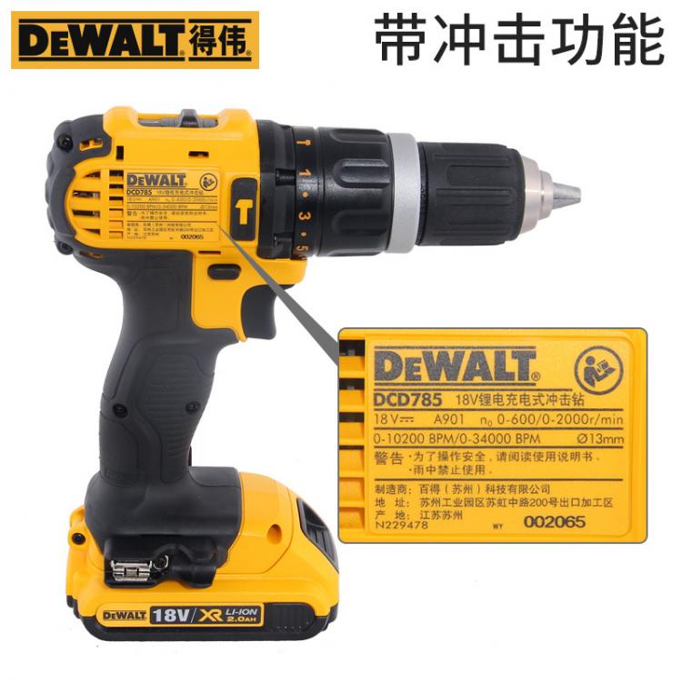 得偉DEWALT 18V鋰電沖擊鉆充電鉆電起子多功能調(diào)速手槍鉆DCD785