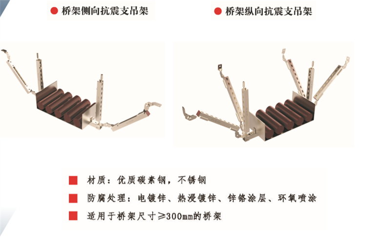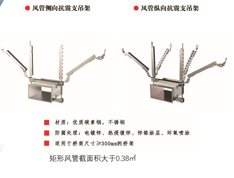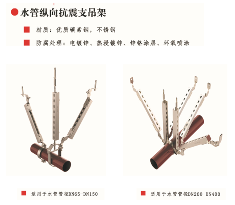 使建 筑經抗震設防后,減輕建筑的地震破壞避免人員傷亡,減少經濟損失。設計了適用于不同類型的抗震吊支架,適用于不同的場景。