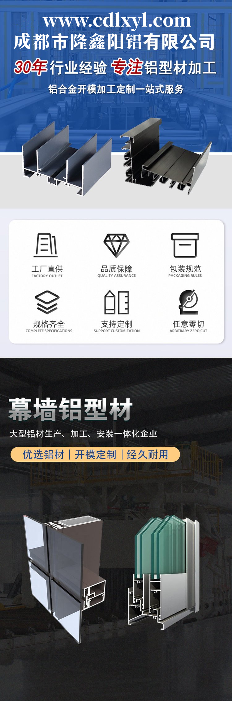 產(chǎn)品參數(shù) 產(chǎn)品名稱:四川幕墻鋁型材 隆鑫陽定制生產(chǎn) 廠家批發(fā)拿貨 防潮防火抗腐蝕