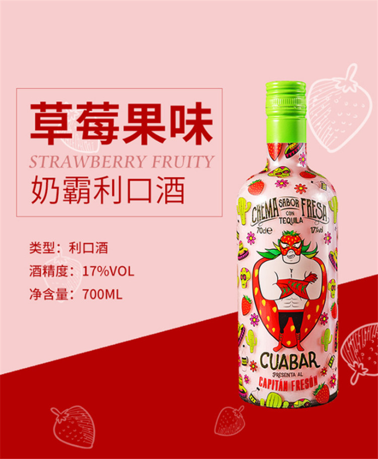 草莓奶霸奶油利口酒 西班牙原裝進口 力嬌酒微醺晚安酒700ml 1瓶裝