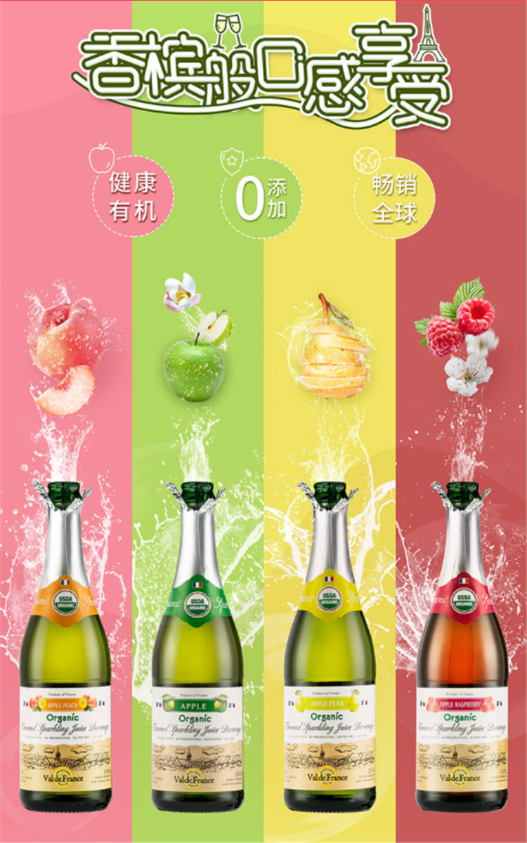 法國(guó)進(jìn)口沃迪安無(wú)醇起泡酒香檳果汁果酒無(wú)酒精氣泡酒 莓果口味750ml*1