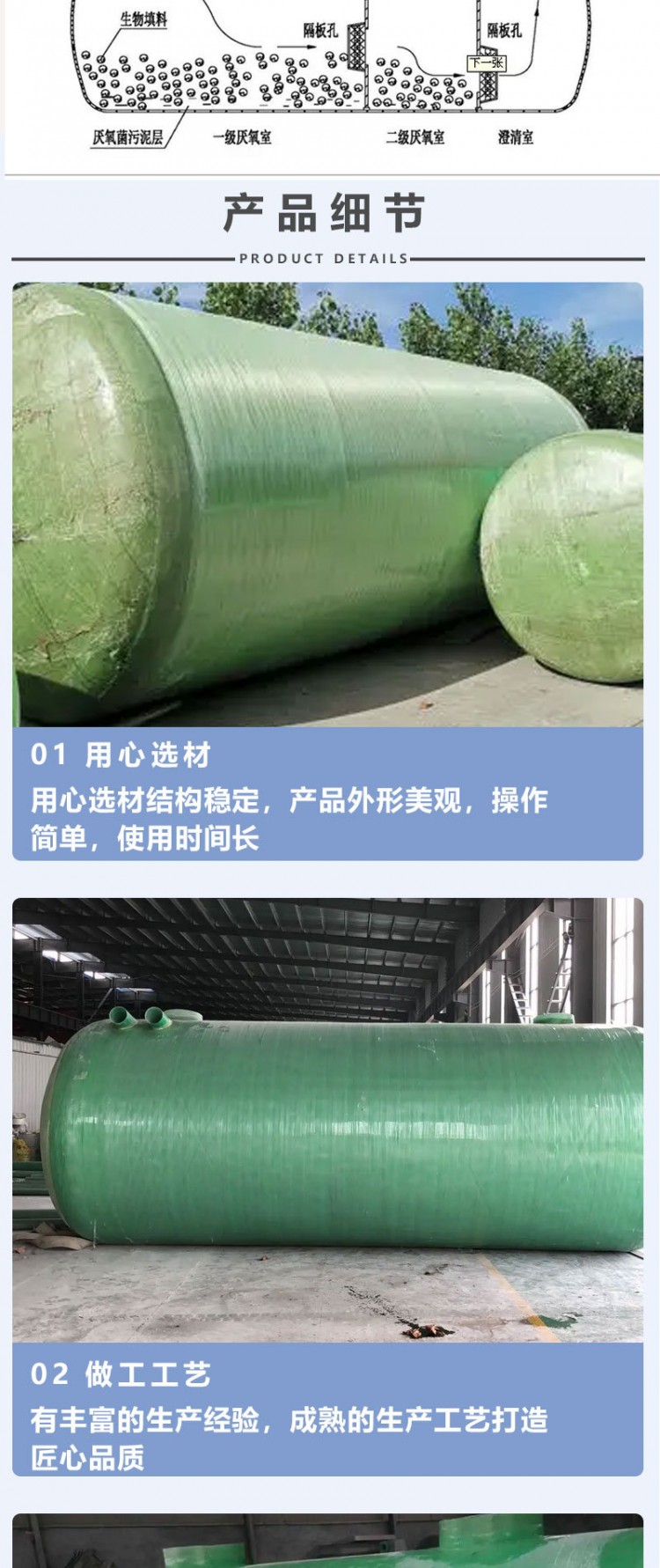 3、預制化糞池價格合理,造價低于國家預算造價,根據(jù)設計容量自由增減組合,不需設計化糞池施工圖,節(jié)省時間、、節(jié)約設計費。施工周期短施工費用低。