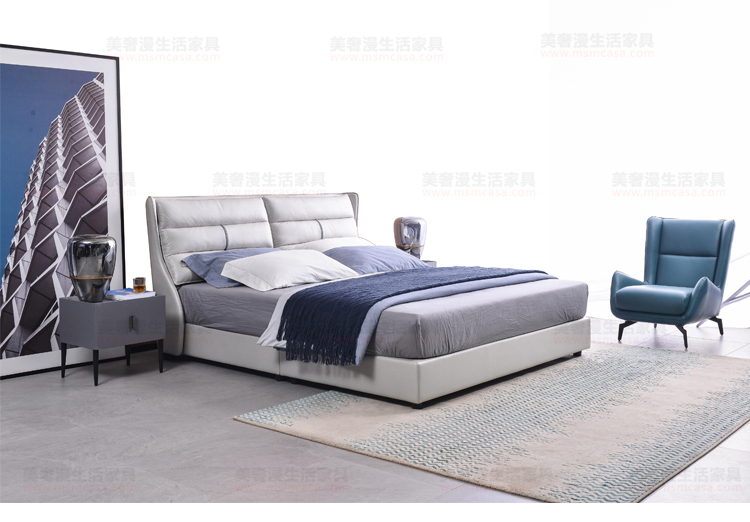 成都現(xiàn)代簡約輕奢北歐風(fēng)ins風(fēng)極簡齊邊小戶型臥室雙人床1.8米科技布軟床直銷