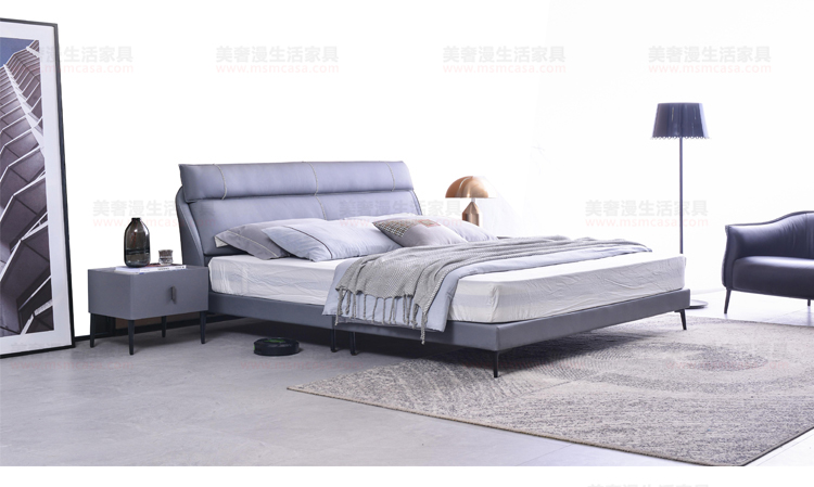 美奢漫現(xiàn)代輕奢真皮家用主臥1.5米1.8米雙人婚床軟包床廠家