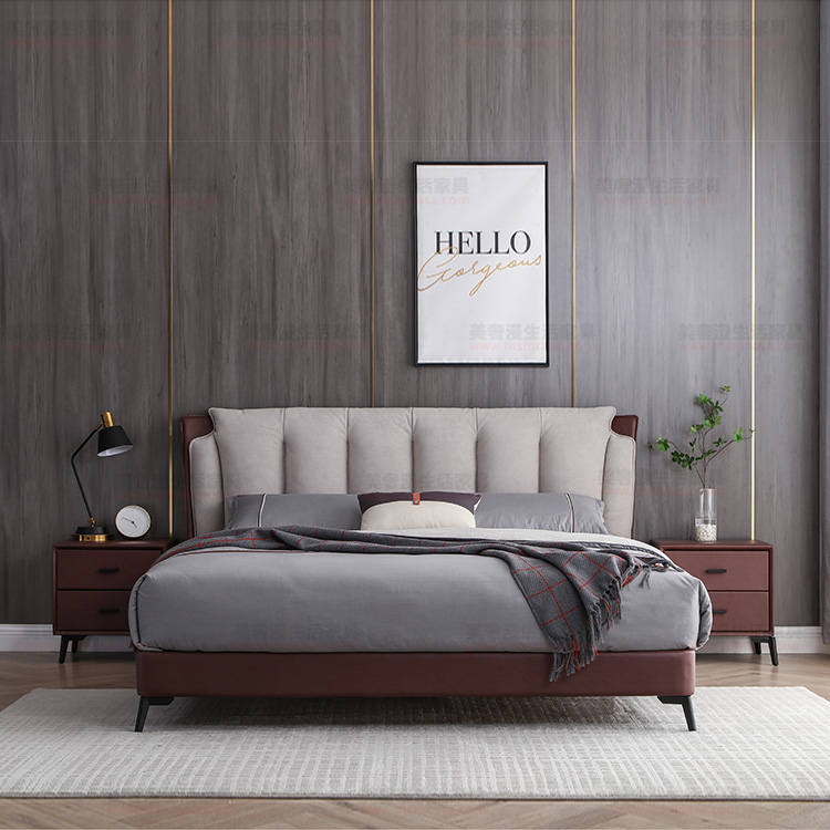 成都美奢漫新款現(xiàn)代極簡輕奢科技布1.8米雙人布藝軟床家具