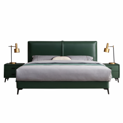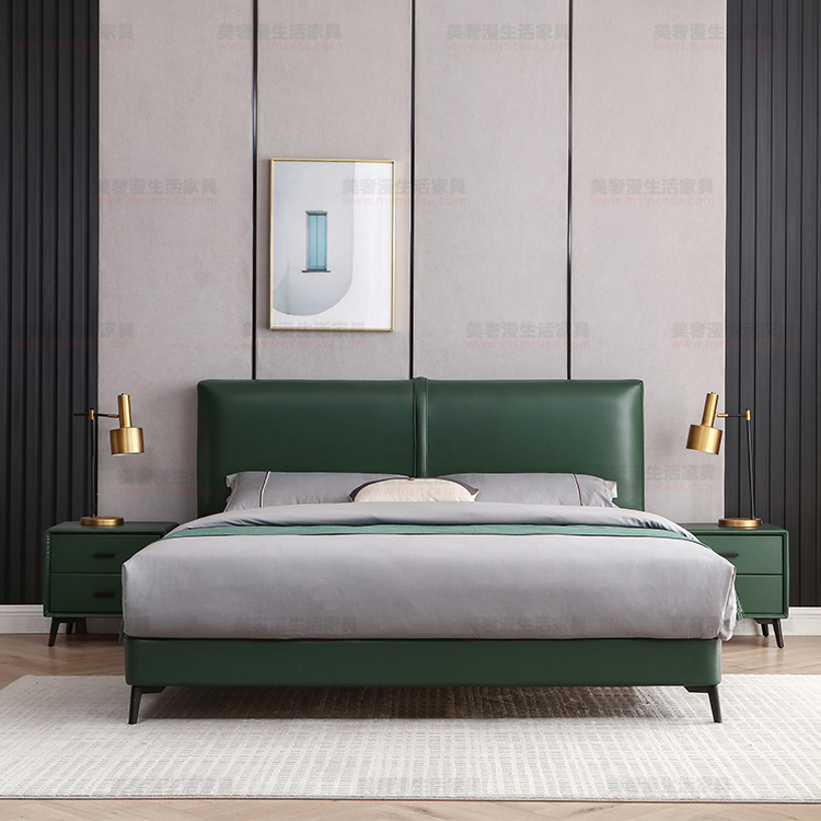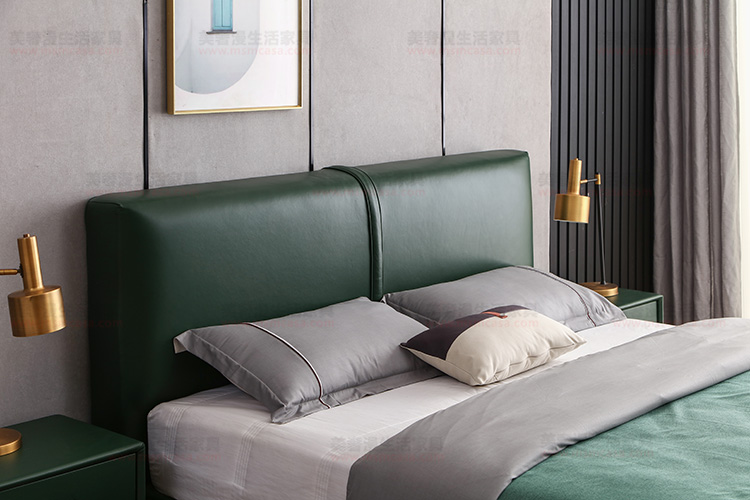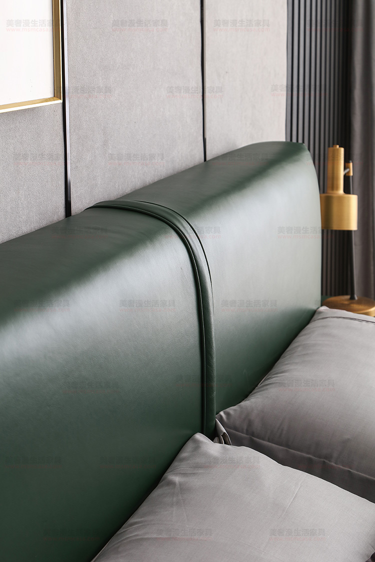 真皮床頭+仿皮床身+高密度海綿+實木內架