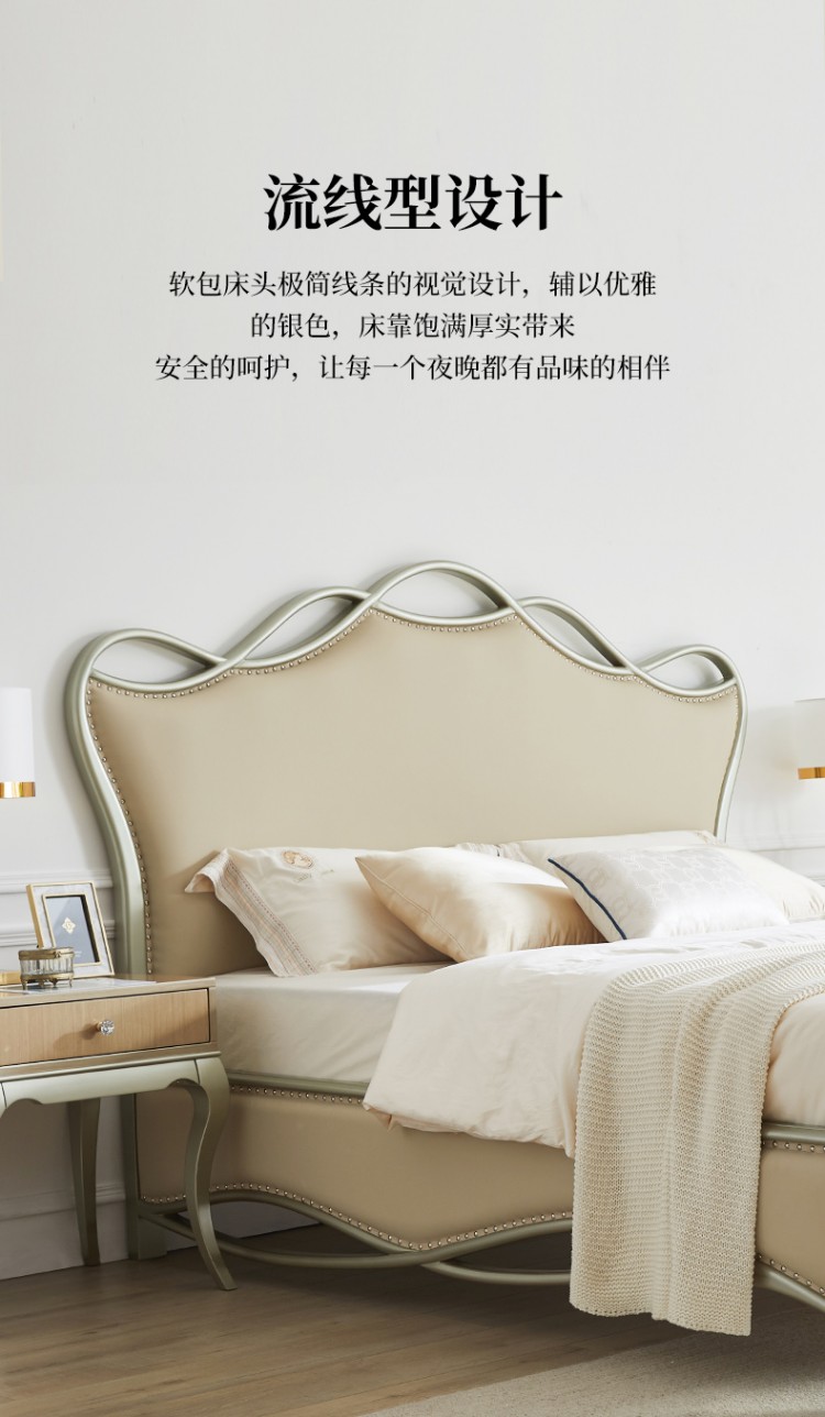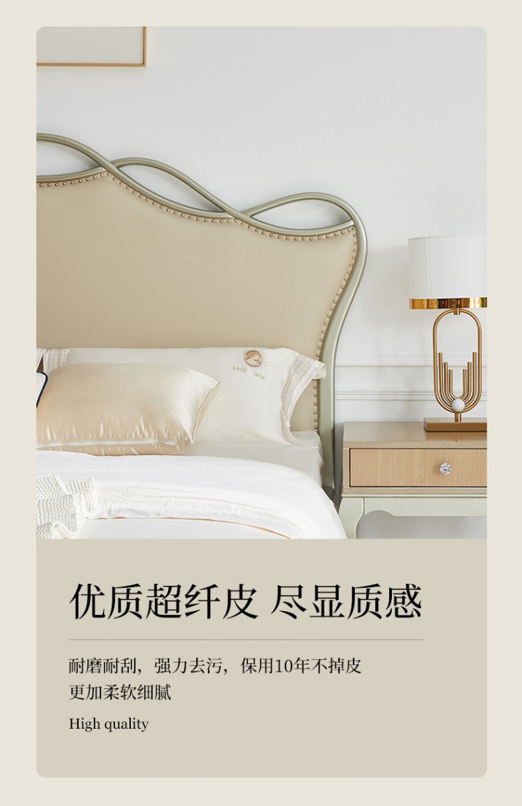 廣東品質(zhì)法式輕奢小美北歐實木軟包全屋臥室1.8米雙人軟床成都家具