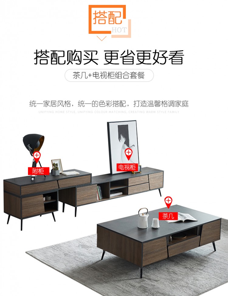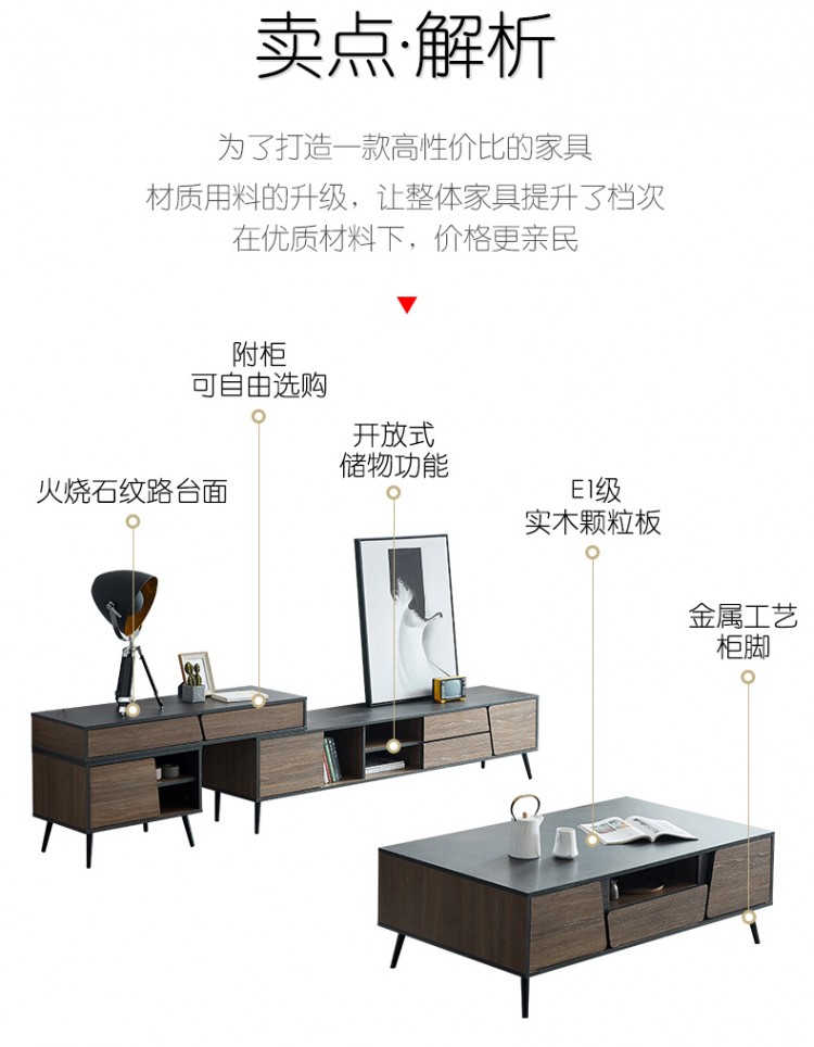 火燒石極簡(jiǎn)現(xiàn)代北歐工業(yè)風(fēng)伸縮組合茶幾電視柜客廳家具