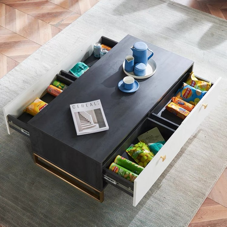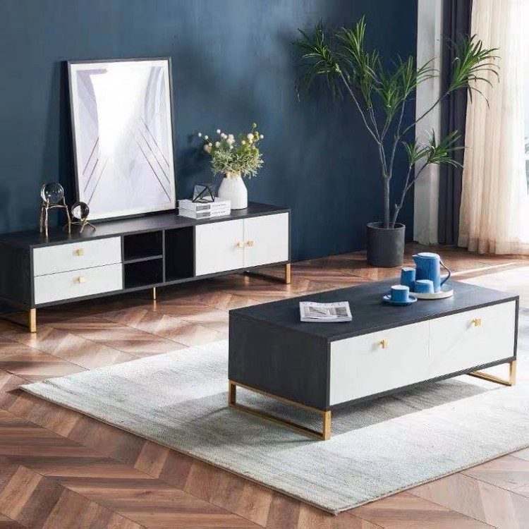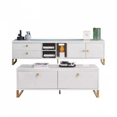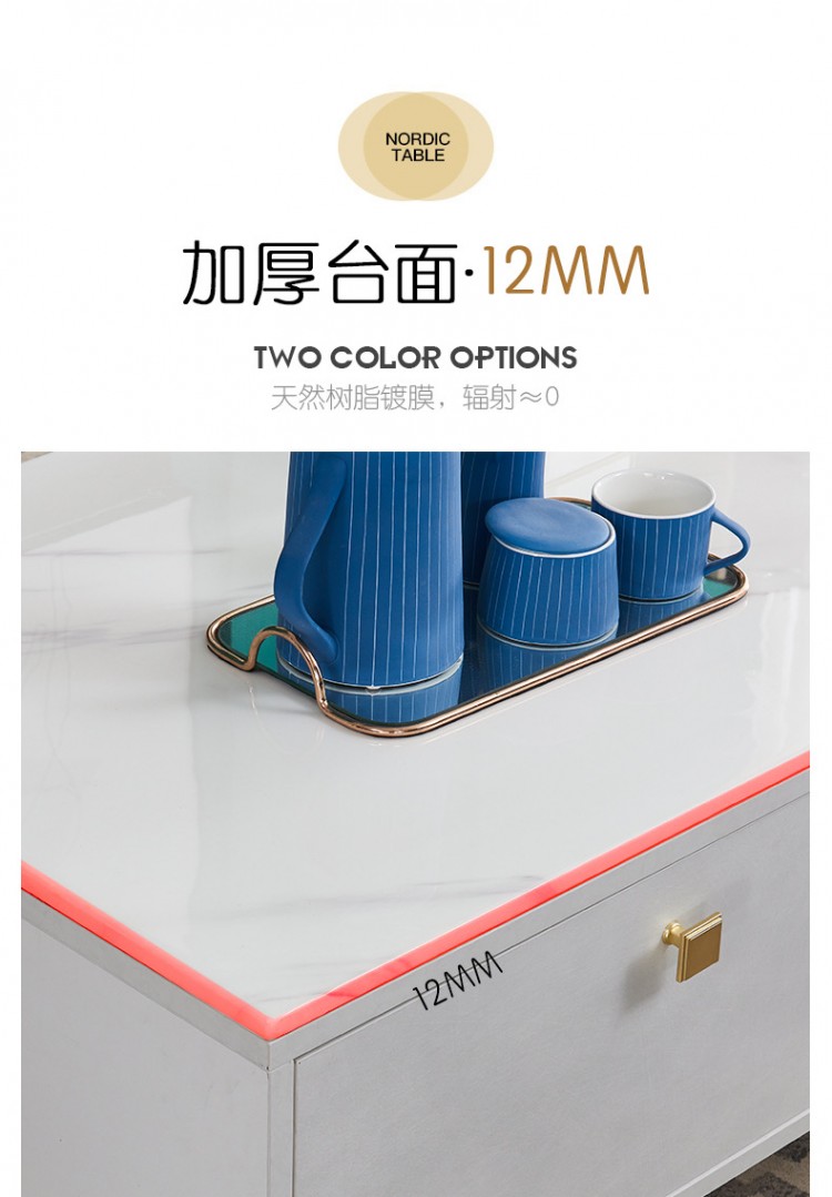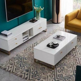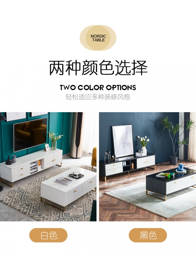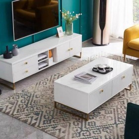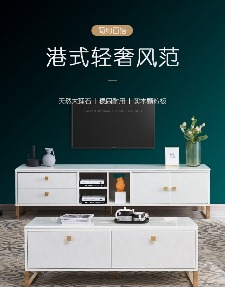 白色大理石現(xiàn)代港式輕奢雙臺(tái)面大容量組合茶幾電視柜全屋家具