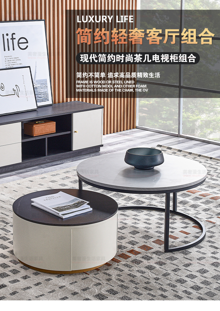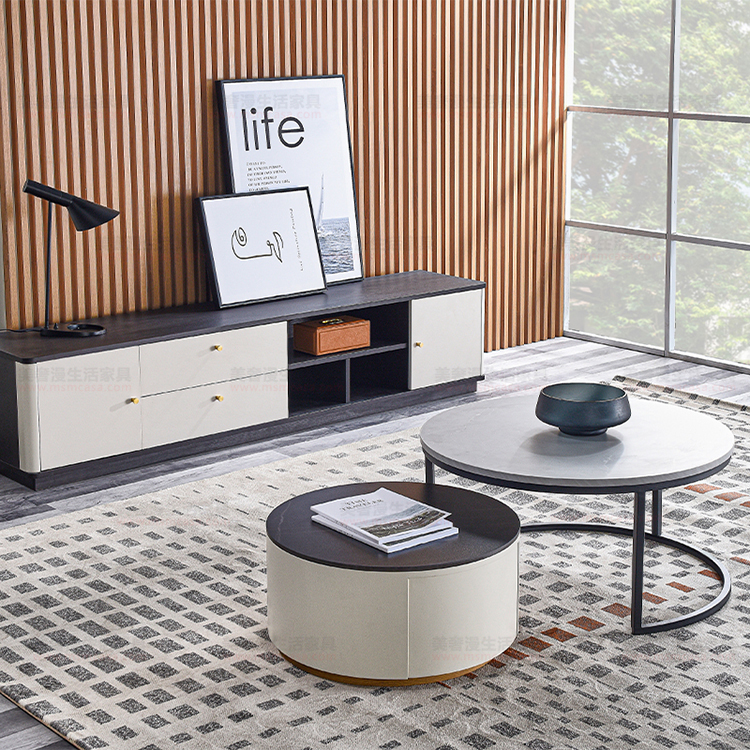 成都美奢漫后現(xiàn)代輕奢伸縮茶幾電視柜組合現(xiàn)代簡(jiǎn)約客廳小戶型北歐圓形茶幾廠家