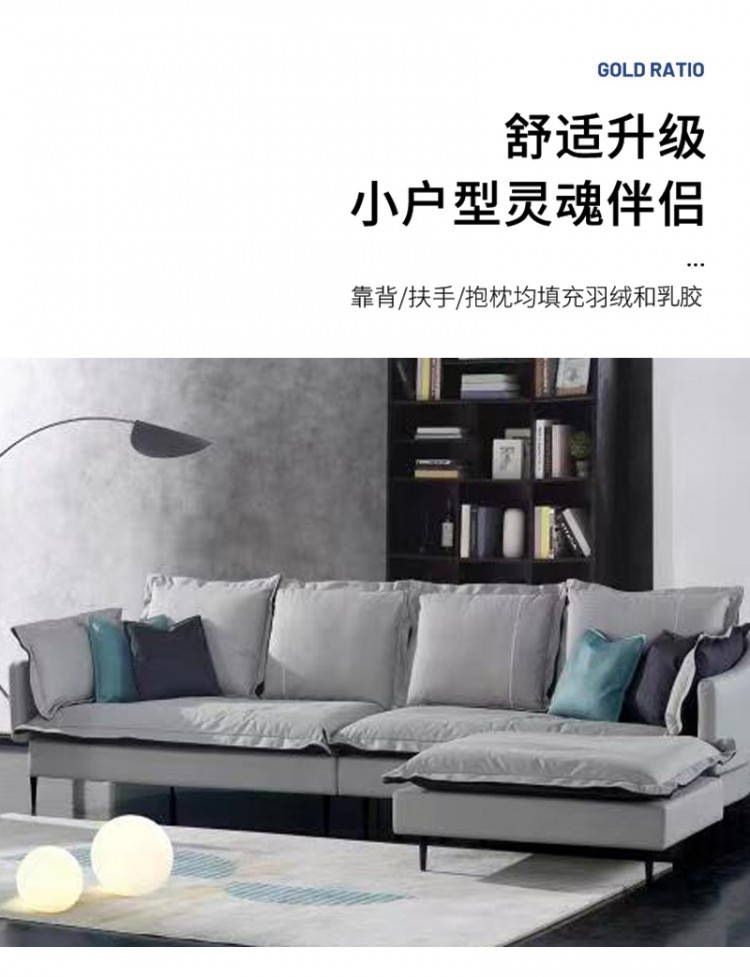 雙色科技布沙發(fā)意式極簡客廳直排大小戶型輕奢現(xiàn)代布藝羽絨云朵沙發(fā)