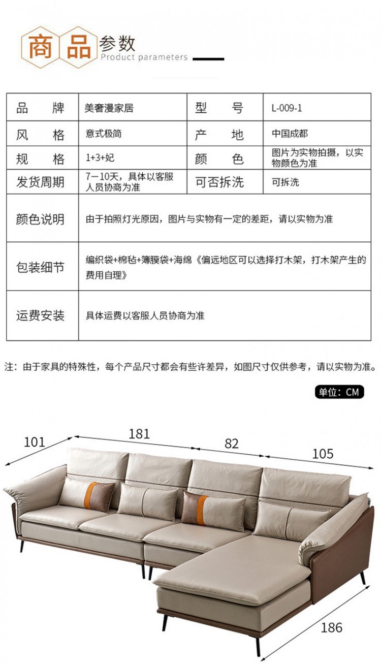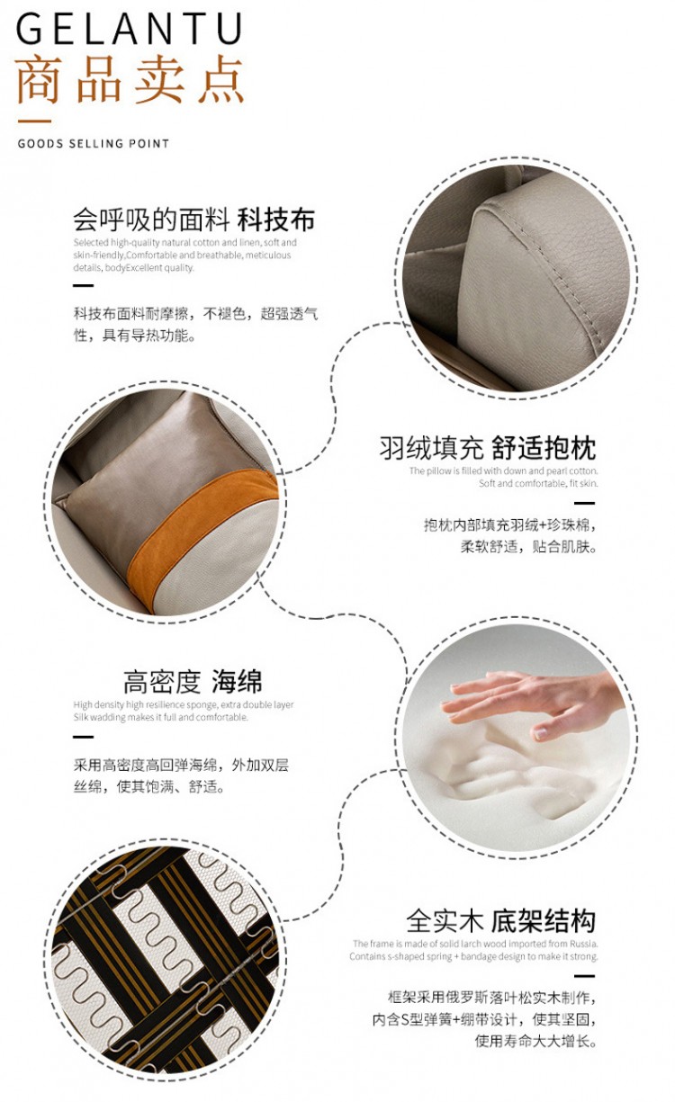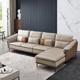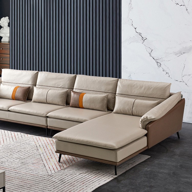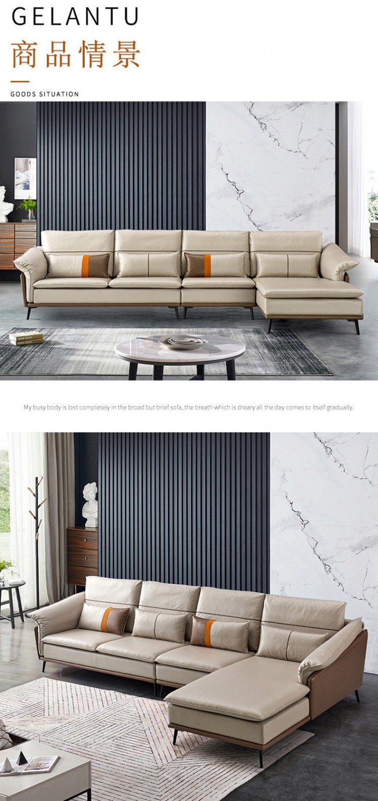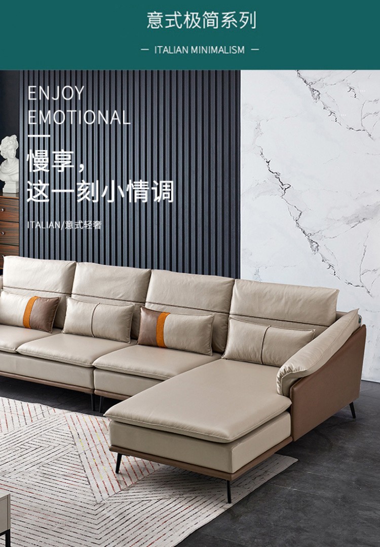 美奢漫仿真皮沙發(fā)科技布客廳轉(zhuǎn)角貴妃現(xiàn)代簡約北歐輕奢羽絨沙發(fā)
