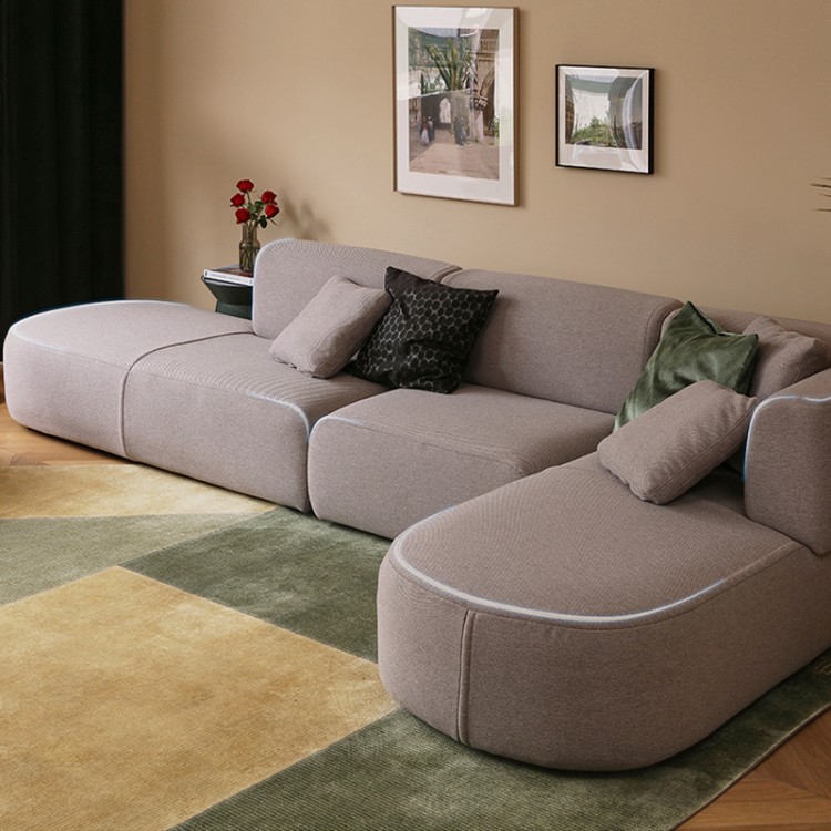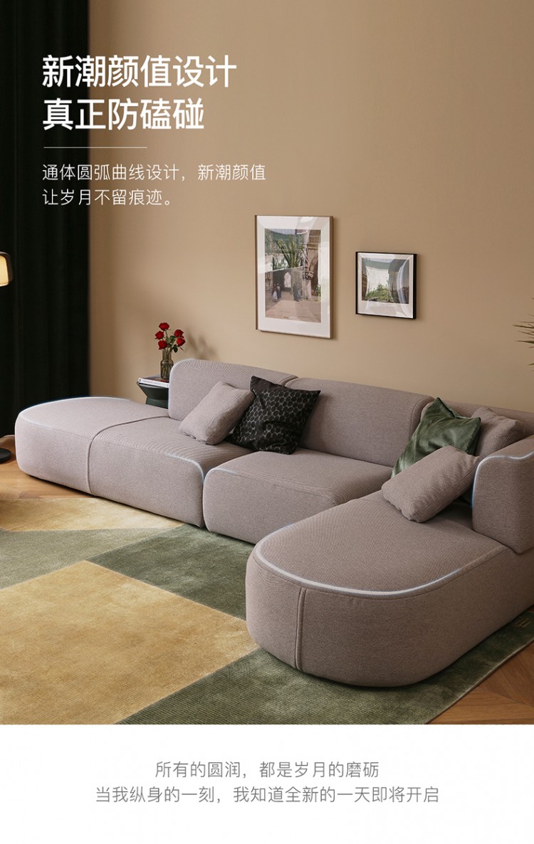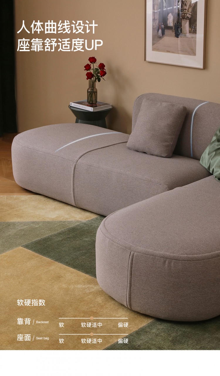 北歐棉麻沙發(fā)簡(jiǎn)約客廳弧形輕奢ins風(fēng)三四人小戶型樣板間組合布藝沙發(fā)