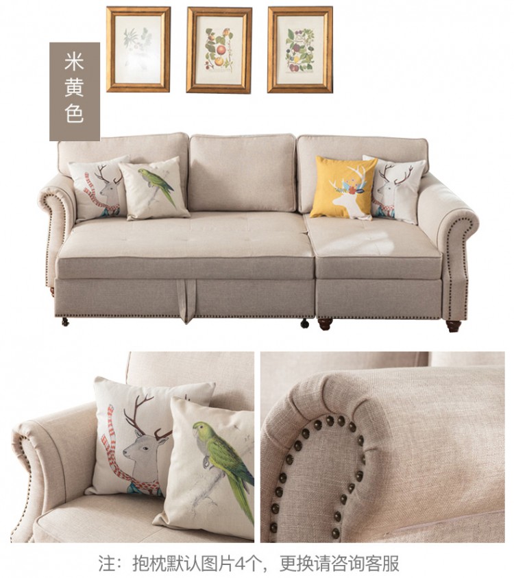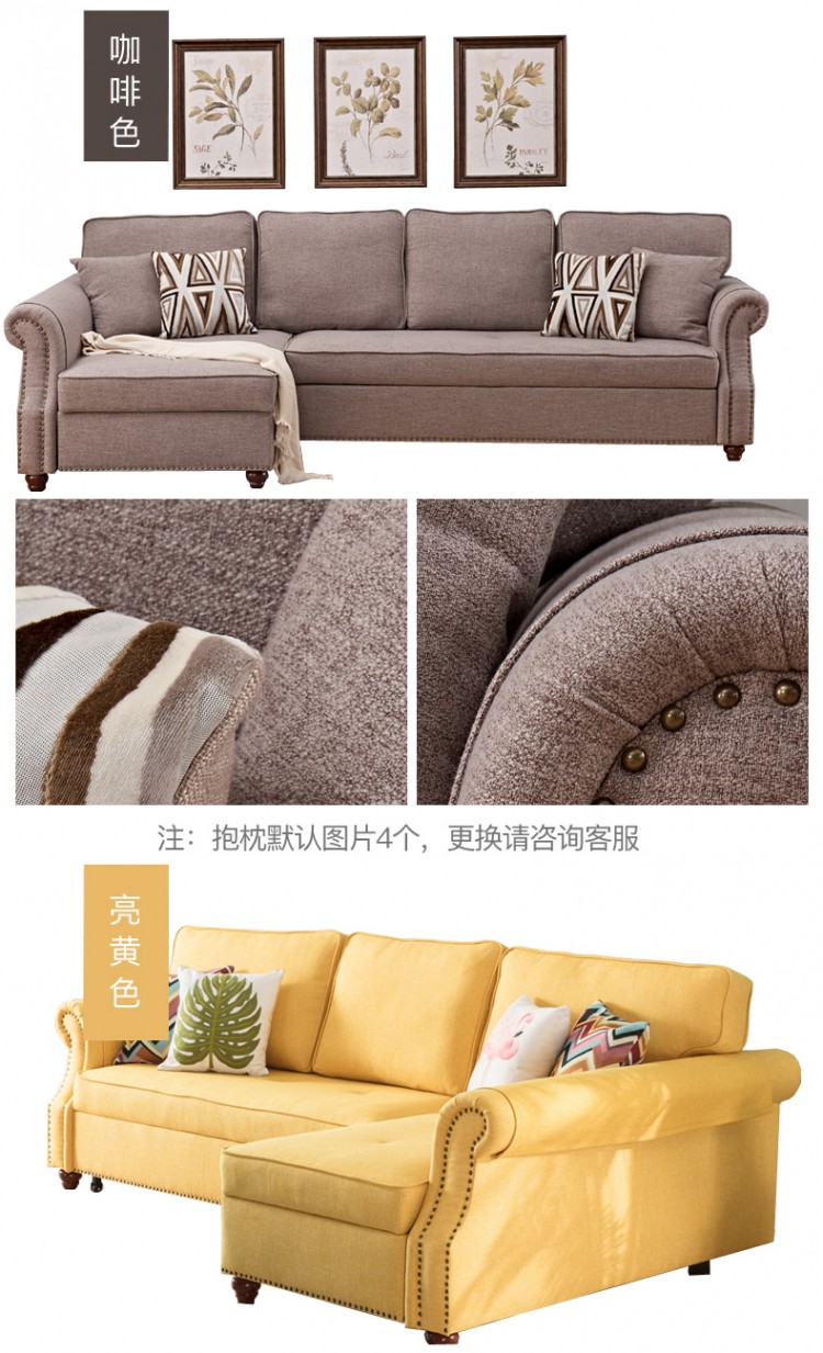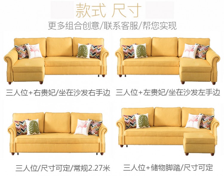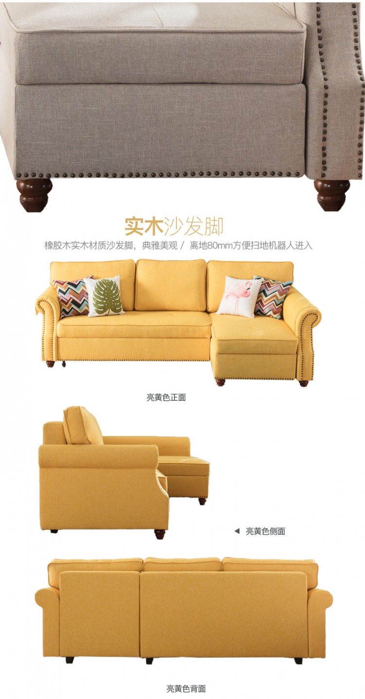 成都美式田園輕奢轉(zhuǎn)角儲物沙發(fā)可拉伸折疊棉麻科技布沙發(fā)床客廳臥室家具