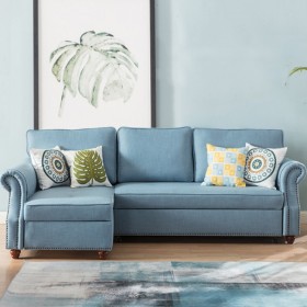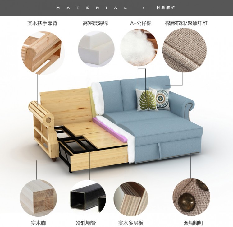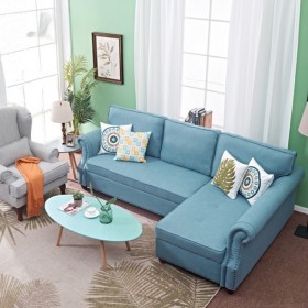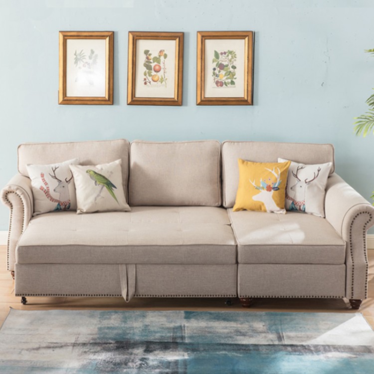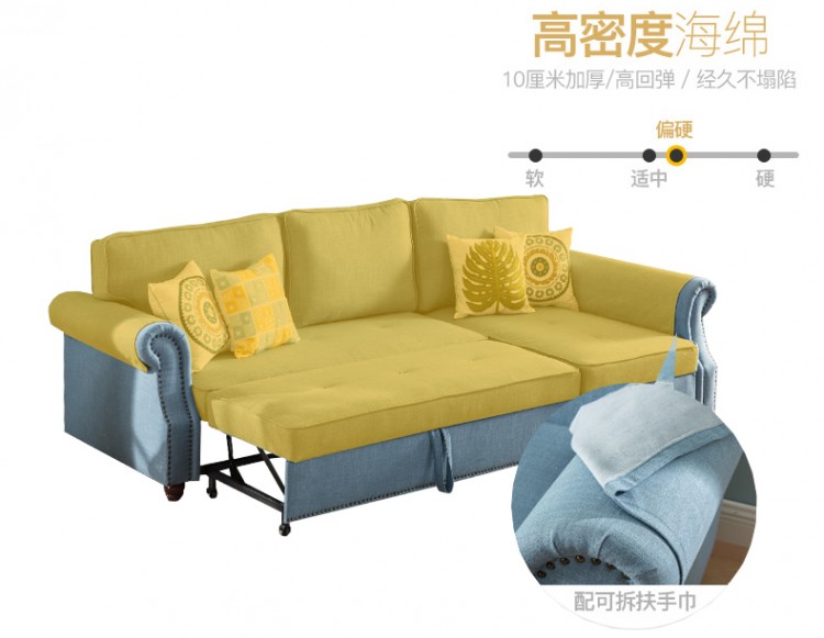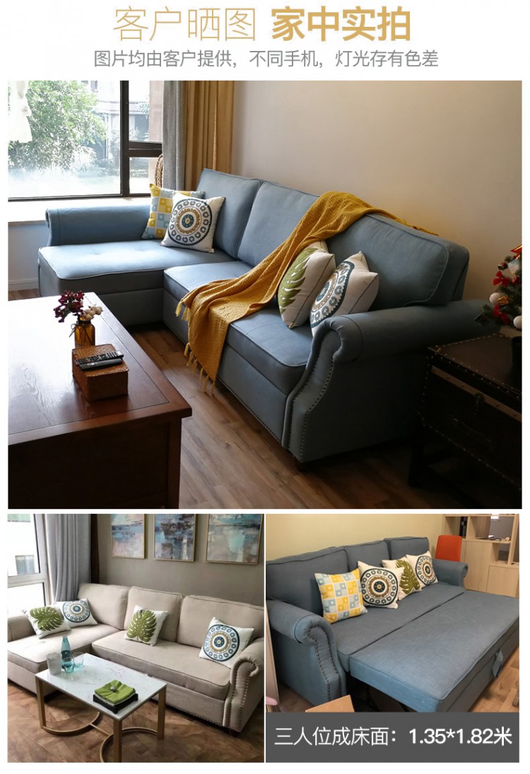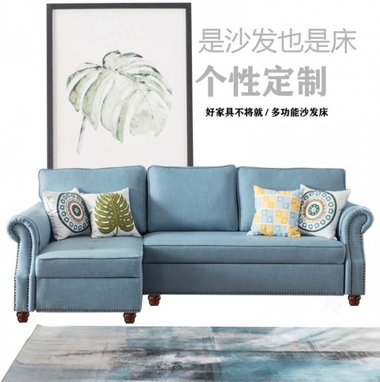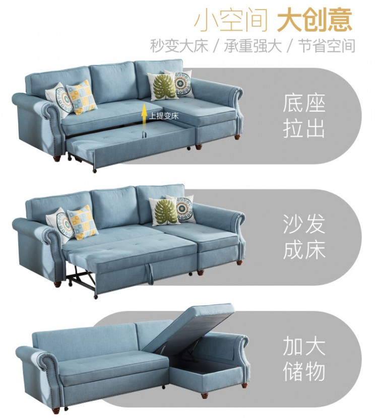 成都美式田園輕奢轉(zhuǎn)角儲物沙發(fā)可拉伸折疊棉麻科技布沙發(fā)床客廳臥室家具