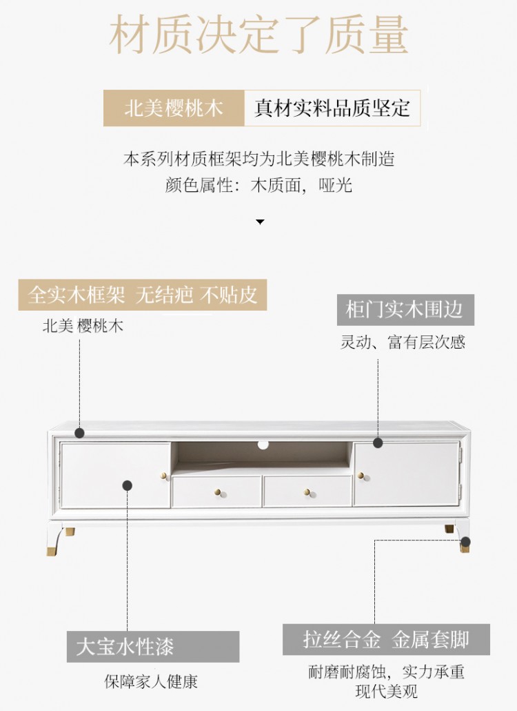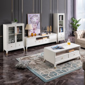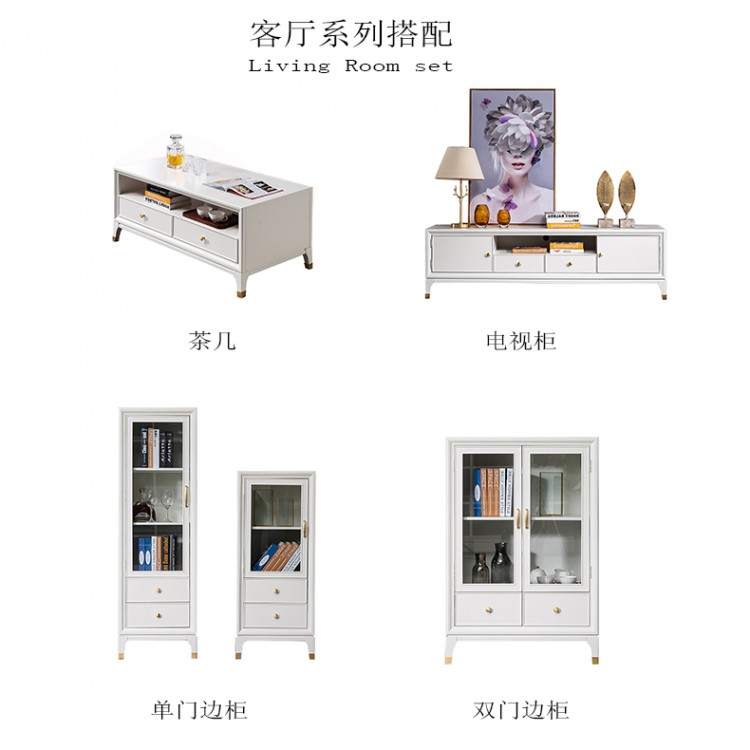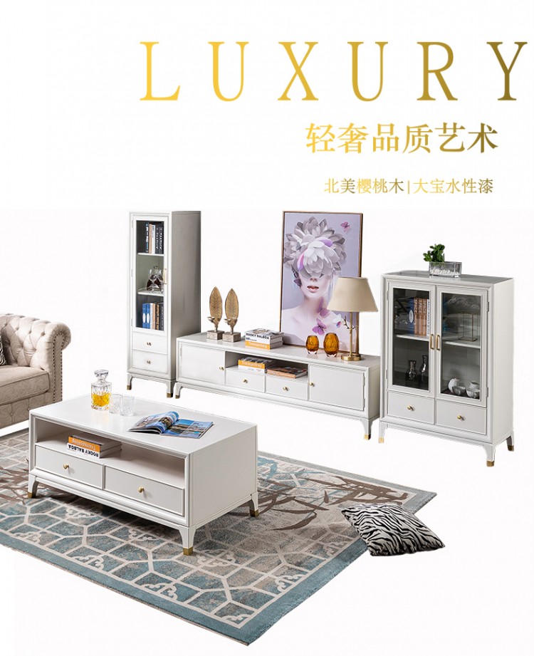 美奢漫實(shí)木茶幾電視柜組合客廳簡(jiǎn)約小戶型美式白色茶桌酒柜客廳家具
