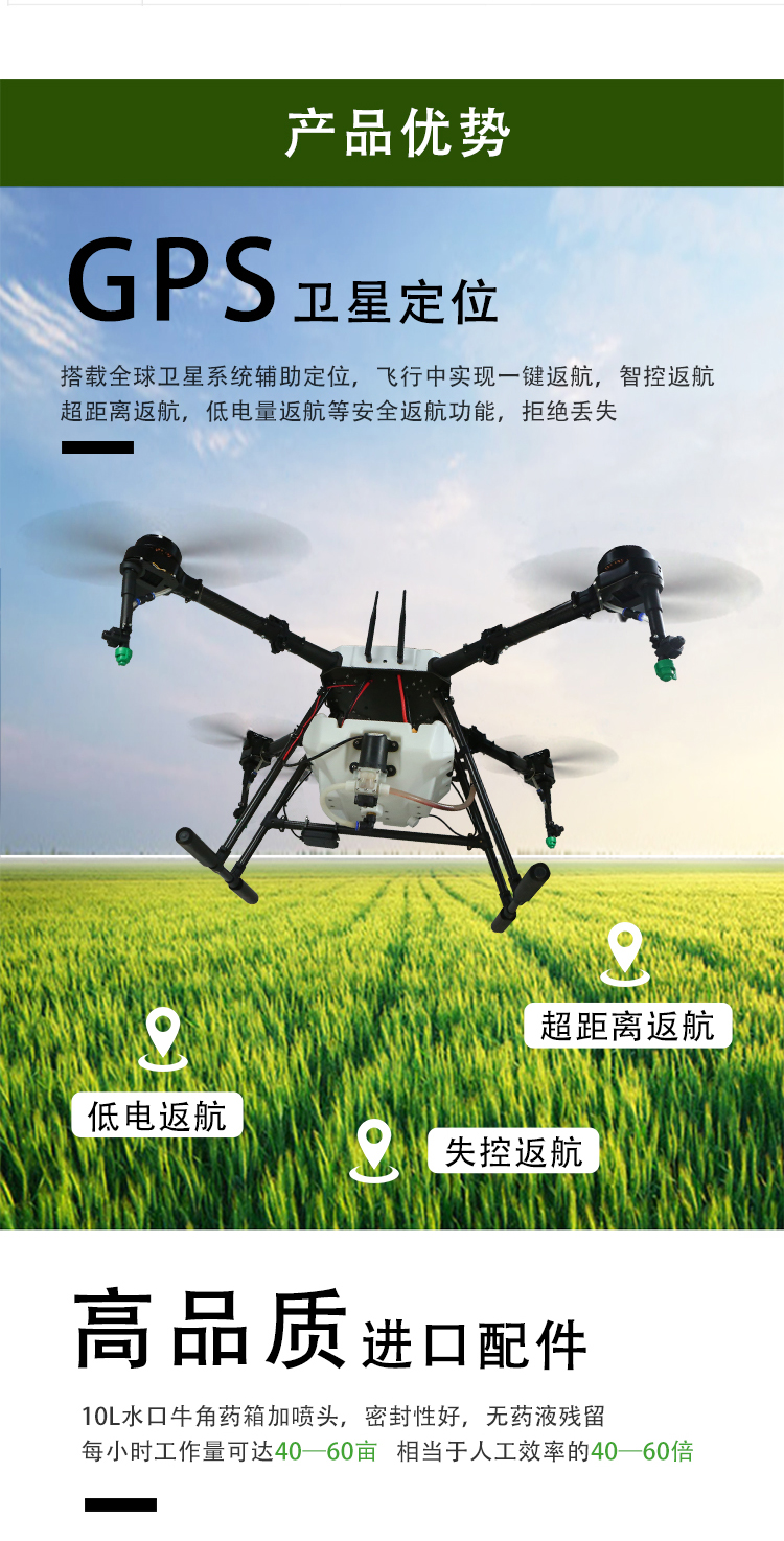 DF400E 4軸10升農(nóng)業(yè)植保無人機(jī)打藥播種施肥飛行器噴藥飛機(jī)