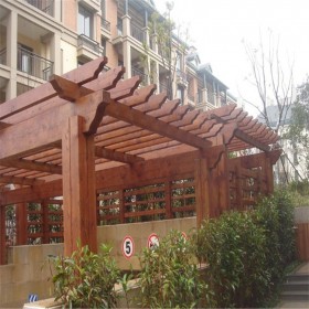 2.花架可作遮蔭休息之用,并可點(diǎn)綴園景?;茉O(shè)計(jì)要了解所配置植物的原產(chǎn)地和生長(zhǎng)習(xí)性,以創(chuàng)造適宜于植物生長(zhǎng)的條件和造型的要求。防腐木花架,有兩方面作用。一方面供人歇足休息、欣賞風(fēng)景;一方面創(chuàng)造攀援植物生長(zhǎng)的條件。因此可以說花架是較接近于自然的園林小品了。