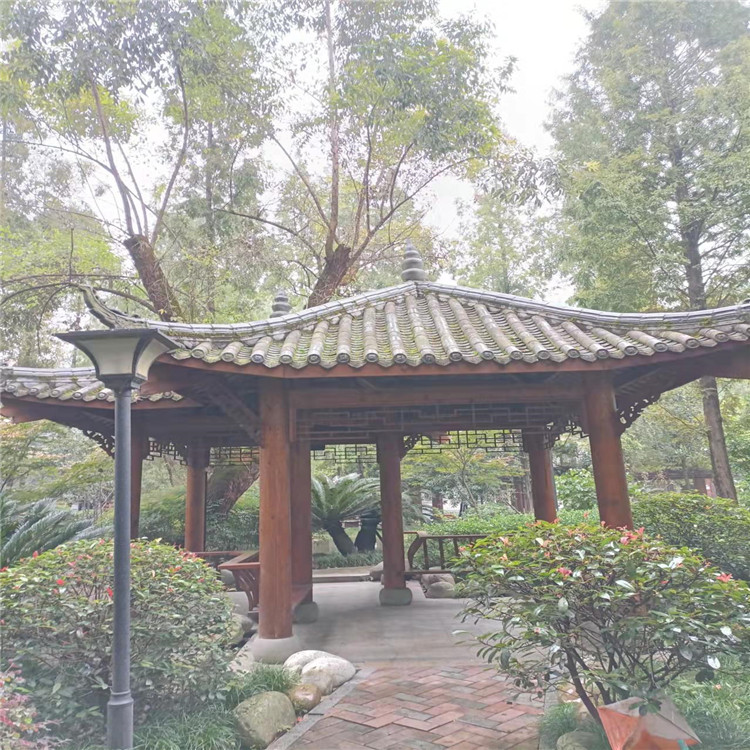 其三看涼亭的頂部。優(yōu)質(zhì)的涼亭頂部是有三層設(shè)計,內(nèi)層為一層碳化木,中間層為防水板,外層是碳化木瓦片,一般采用的是琉璃瓦,瓦片溝槽具有排水功能,三層設(shè)計不易漏水,可以放心置于室外。亭子內(nèi)燈的線路都是出廠前布好的,亭子葫蘆頂四根米字形橫梁里面有開槽,葫蘆頂里面自帶有電線。