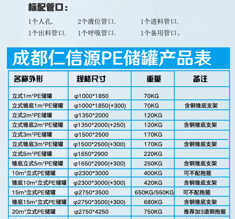 8、 本塑料儲(chǔ)罐為聚乙烯材質(zhì)一體成型,請(qǐng)勿對(duì)防腐儲(chǔ)罐、化工水塔增加內(nèi)壓或外壓。進(jìn)液、排液流量較大時(shí),應(yīng)配置相應(yīng)流量的排氣孔。