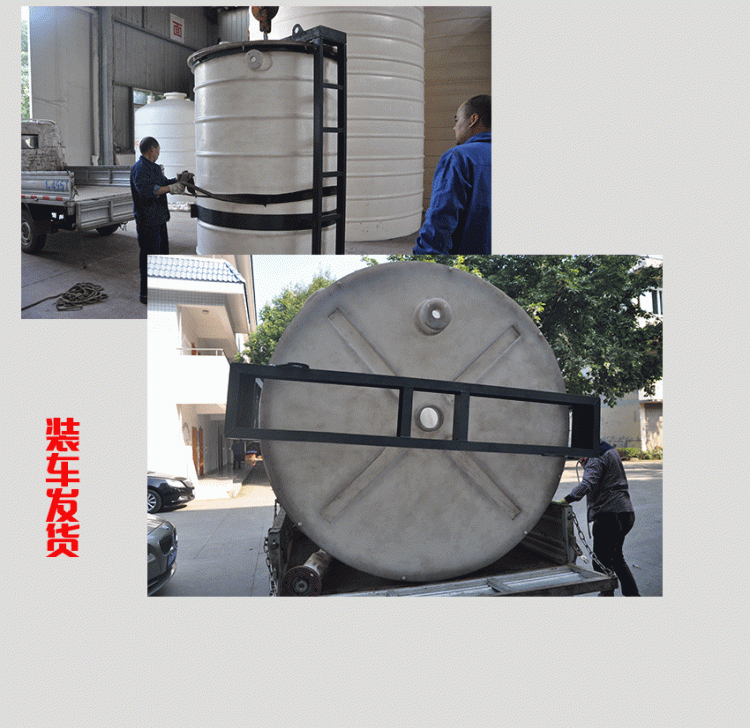 1、5噸塑料PE水塔、塑料儲(chǔ)罐以上產(chǎn)品,必須采用吊車鏟車卸貨,嚴(yán)禁直接從車上暴力推下。
