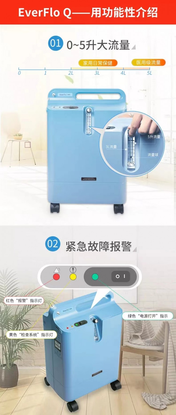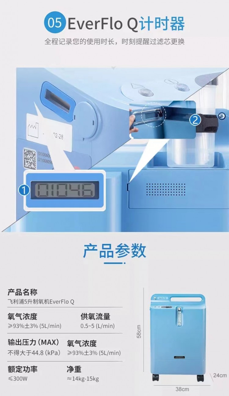 飛利浦醫(yī)用制氧機家用進(jìn)口氧氣機5L吸氧機[新款EverFlo Q]