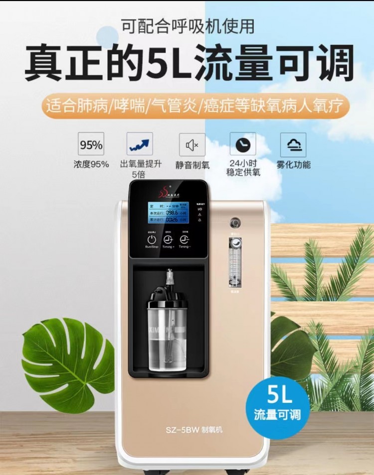 雙盛醫(yī)療醫(yī)用制氧吸氧氧氣機(jī)家庭用老人孕婦用帶霧化流量1-5升可調(diào) SZ-5BW
