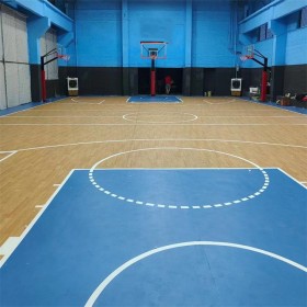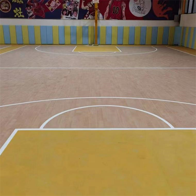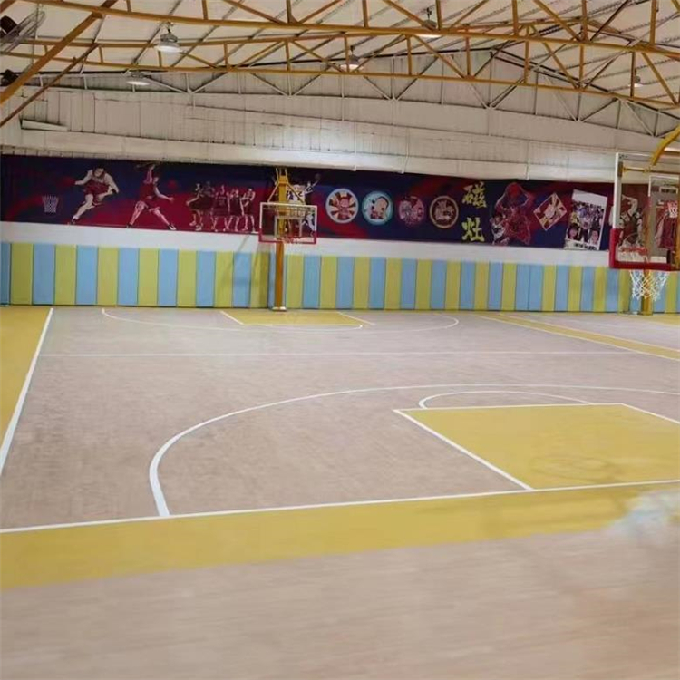 籃球場(chǎng)地膠是由TPU處理的表層、PVC耐磨層、1000D的玻璃纖維補(bǔ)強(qiáng)網(wǎng)和網(wǎng)格布纖維加強(qiáng)層和PVC發(fā)泡緩沖層組成。采用純PVC耐磨層,厚度達(dá)1.5,并經(jīng)防老化和緊固技術(shù)處理,耐磨耐壓,使用壽命可達(dá)10年。