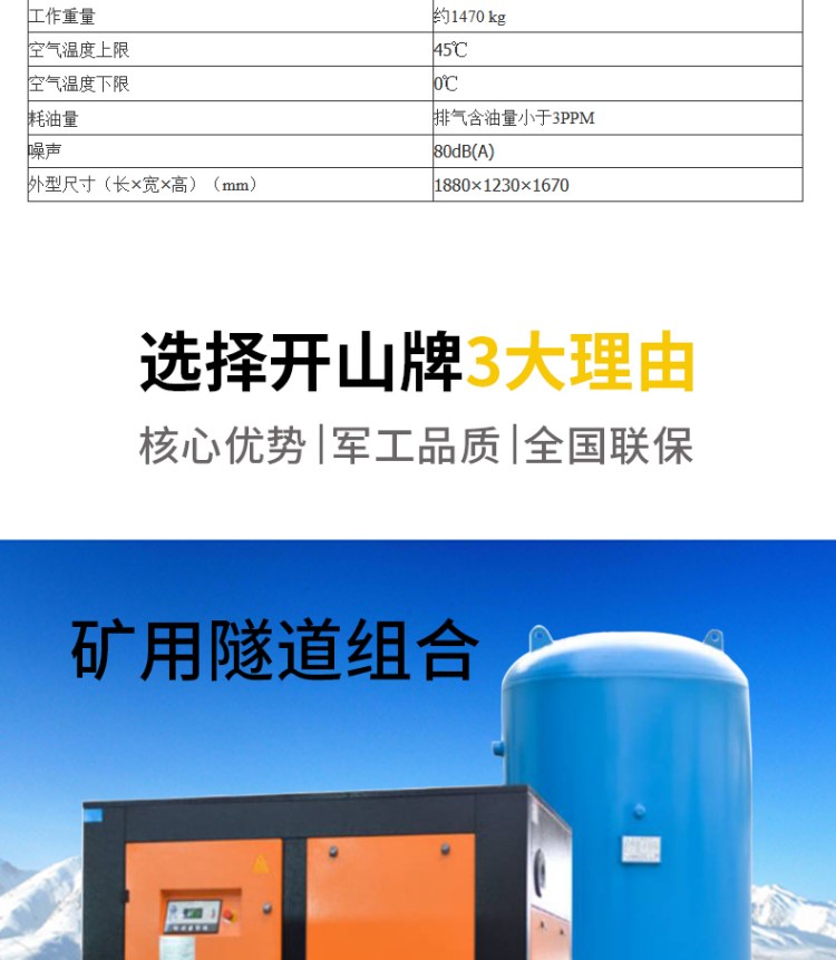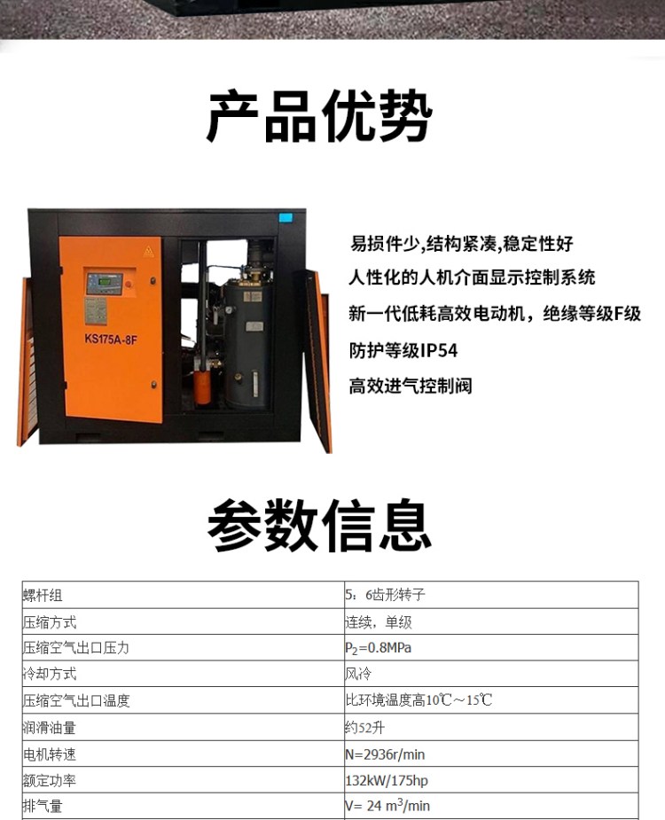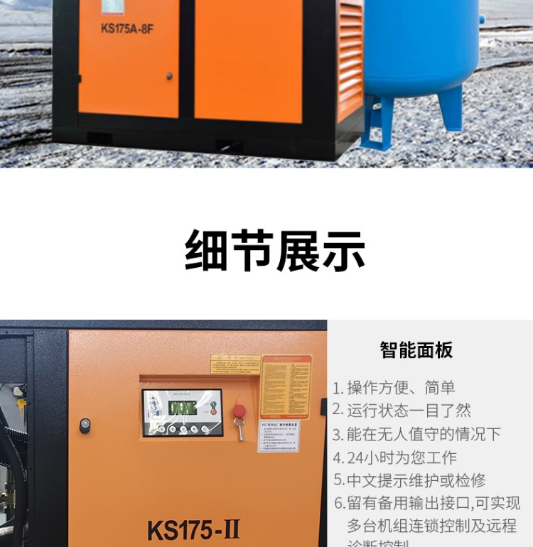開山螺桿空壓機廠家 1礦用工程隧道專用KS175防爆兩級壓縮機
