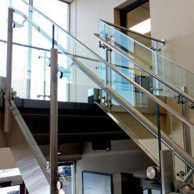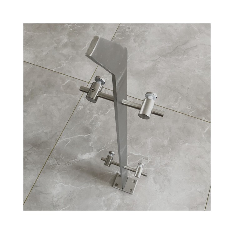不銹鋼掛玻璃立柱。使用不銹鋼玻璃掛件、不銹鋼玻璃夾對玻璃進行固定,一般夾8mm ~ 12mm的單片鋼化玻璃?;蛘邐A膠鋼化玻璃,尺寸視圖紙而定。