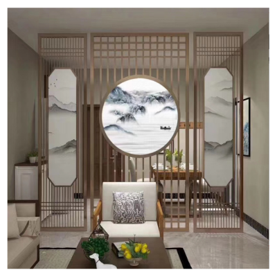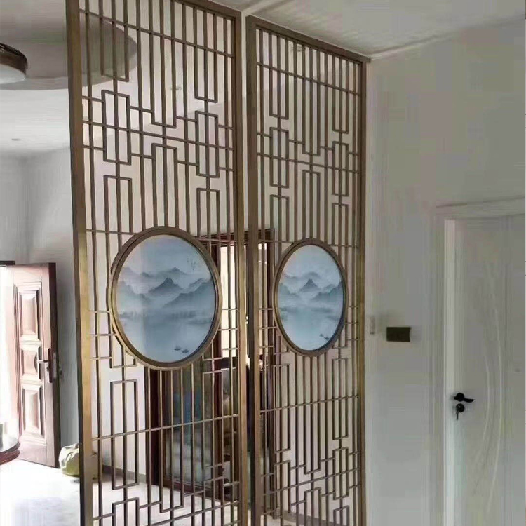 可定制新中式隔斷屏風(fēng) 不銹鋼金屬裝飾玄關(guān) 銅格柵 銅壁畫(huà)