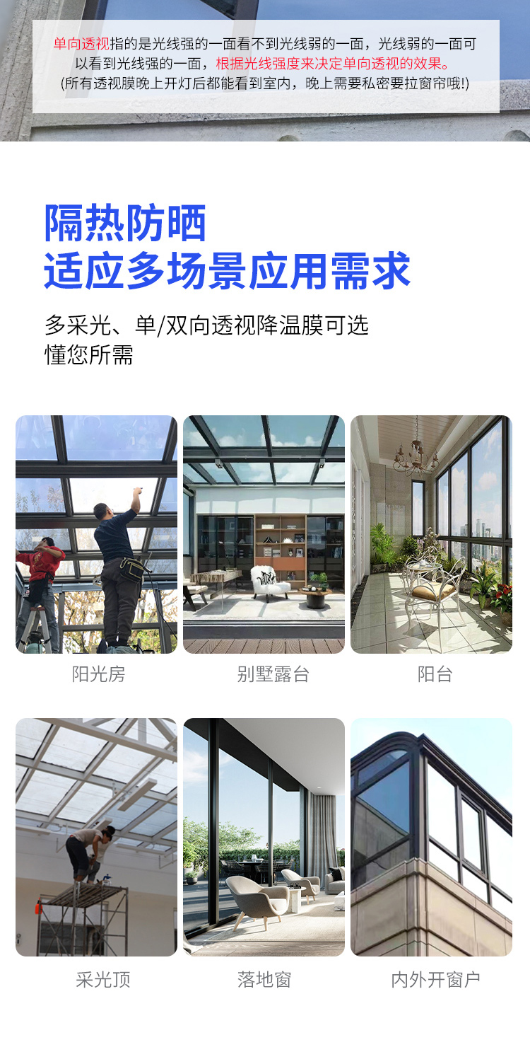 降溫膜定做 防曬玻璃貼紙 陽臺遮陽遮光膜 隔熱降溫