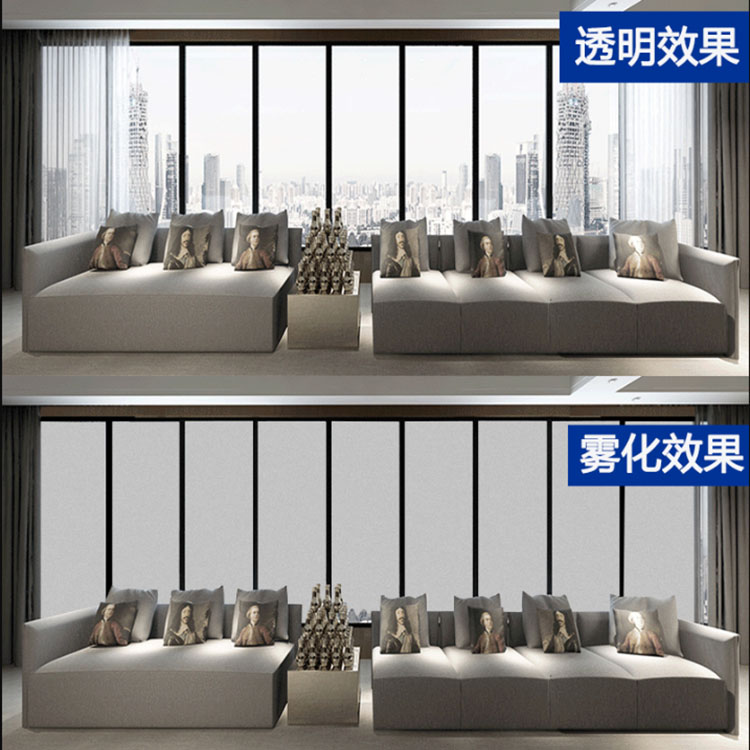 當(dāng)調(diào)光玻璃關(guān)閉電源時,電控調(diào)光玻璃里面的液晶分子會呈現(xiàn)不規(guī)則的散布狀態(tài),此時電控玻璃呈現(xiàn)透光而不透明的外觀狀態(tài);當(dāng)給調(diào)光玻璃通電后,里面的液晶分子呈現(xiàn)整齊排列,光線可以自由穿透,此時調(diào)光玻璃瞬間呈現(xiàn)透明狀態(tài)。