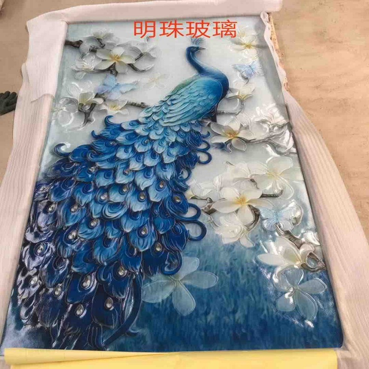 它是一種在玻璃里面雕出深坑的一種,在正面看起來有凹凸感,有立體感的!這種玻璃加工起來也比較復(fù)雜。它必須以1CM的玻璃上加工,不然在加工時(shí)玻璃會(huì)碎掉。一般用于電視背景墻,隔斷!