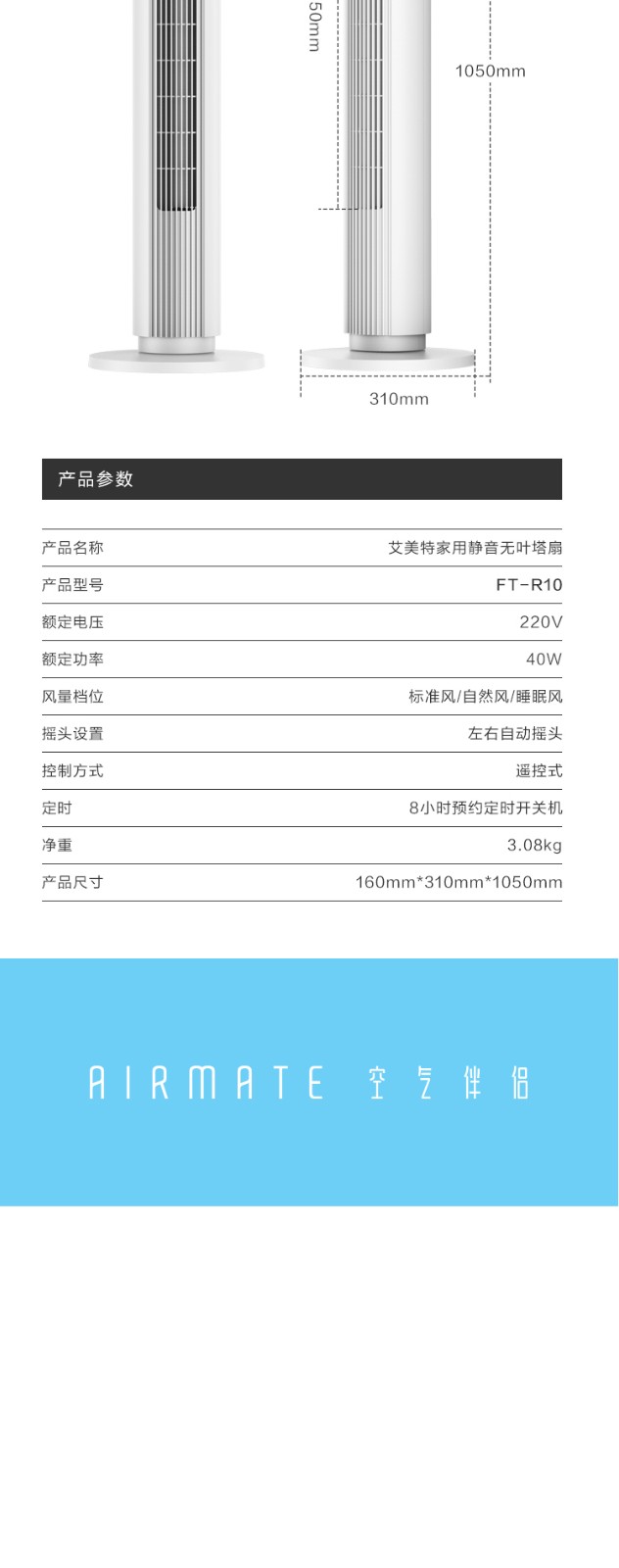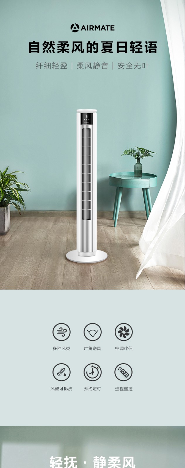 艾美特FT-R10 塔式氣流電風(fēng)扇 省電空氣對流風(fēng)扇
