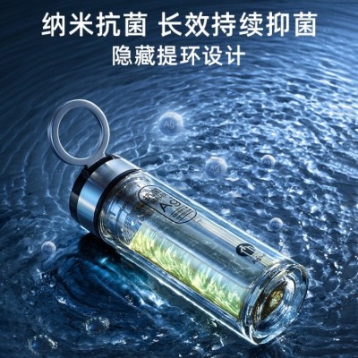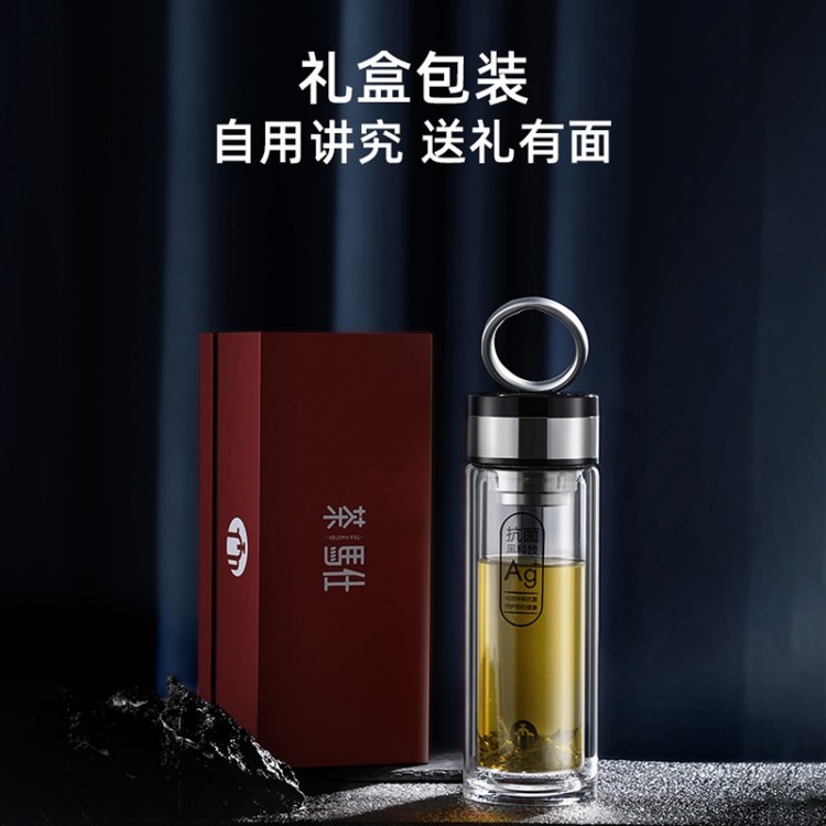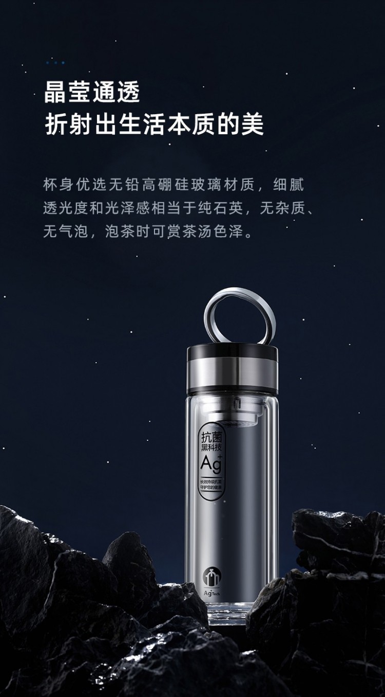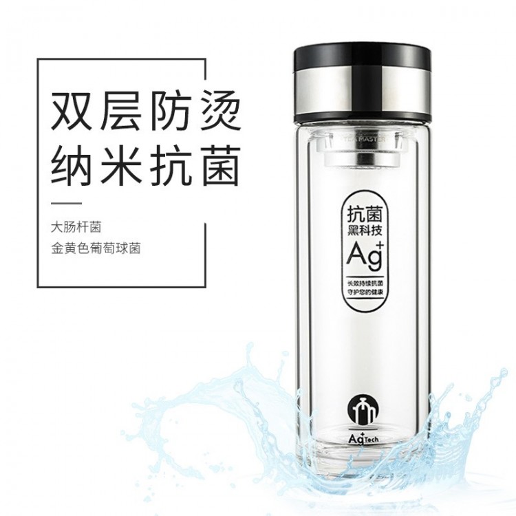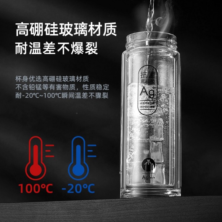 茶馬仕雙層納米玻璃杯-T6 大容量玻璃水杯男女便攜茶杯 黑色368ML