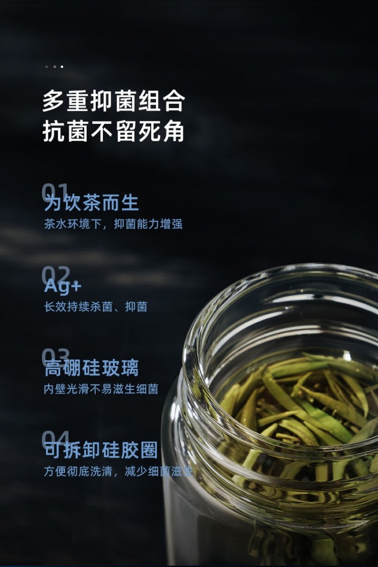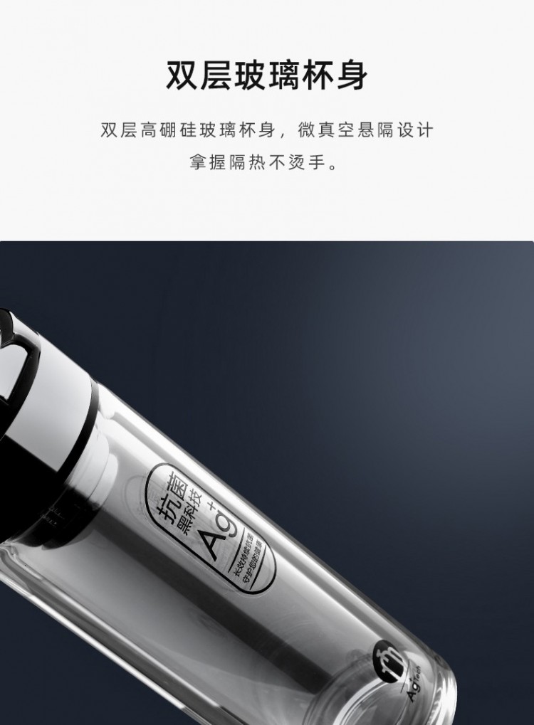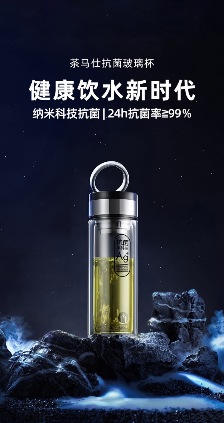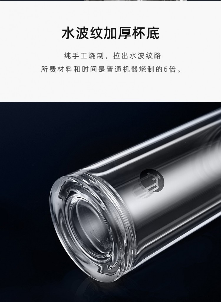 茶馬仕雙層納米玻璃杯-T6 大容量玻璃水杯男女便攜茶杯 黑色368ML