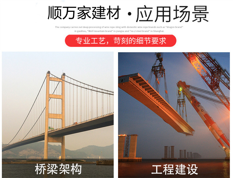 鋼絲繩是將力學性能和幾何尺寸符合要求的鋼絲按照一定的規(guī)則捻制在一起的螺旋狀鋼絲束,鋼絲繩由鋼絲、繩芯及潤滑脂組成。鋼絲繩是先由多層鋼絲捻成股,再以繩芯為中心,由一定數(shù)量股捻繞成螺旋狀的繩。在物料搬運機械中,供提升、牽引、拉緊和承載之用。鋼絲繩的強度高、自重輕、工作平穩(wěn)、不易驟然整根折斷,工作可靠。