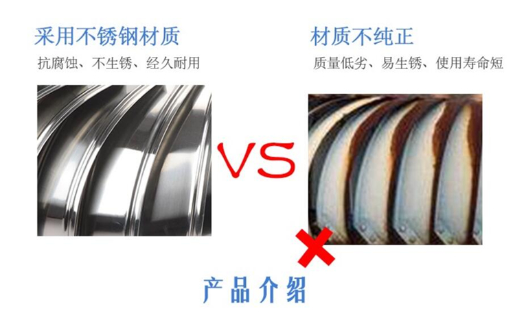 3、葉片波浪型葉片是根據(jù)流體力學(xué)原理而設(shè)計,加大了扇葉與風(fēng)的接觸和角度,在微風(fēng)中也可獲得更大的旋轉(zhuǎn)力,避免了各方向的風(fēng)倒入風(fēng)道的現(xiàn)象,并利用各方向的風(fēng)加快渦輪頭的旋轉(zhuǎn)速度,充分起到防雨、防雪、排風(fēng)的作用。由于采用了波浪形狀,機械強度大大增強,在同類產(chǎn)品中承壓能力佳!