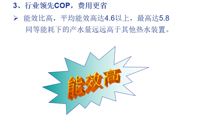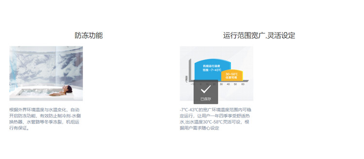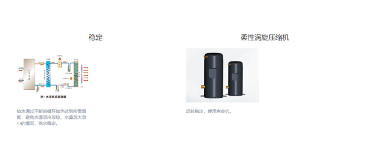 1、采用準(zhǔn)二級壓縮技術(shù),高出水溫度達(dá)58度,機組制熱量大幅提高,并且環(huán)