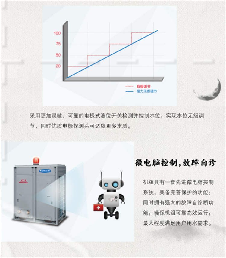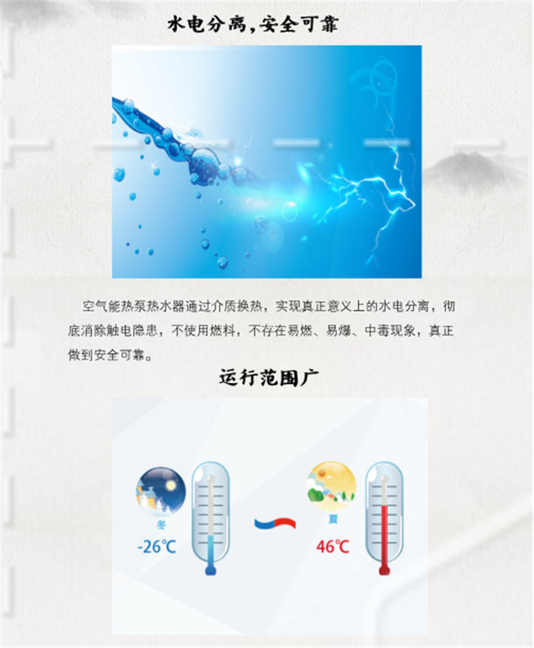 詳細(xì)信息 格力“熱.水域”,以空氣作為熱源,將空氣中的熱量轉(zhuǎn)化到熱水中,全系列平均能效比高達(dá)4.0(高達(dá)5.8)。采用先進(jìn)的水路自控系統(tǒng),冷水進(jìn)入機(jī)組后直接被加熱到設(shè)定溫度,進(jìn)入蓄熱水箱后供用戶使用,廣泛用于賓館、酒樓、醫(yī)院、美容美發(fā)、洗衣店、洗浴中心、工廠、浴足、SPA會(huì)館等地方。