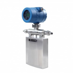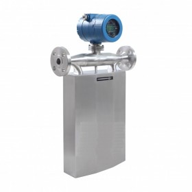 科里奧利質(zhì)量流量計(jì)質(zhì)量測(cè)量的原理是牛頓第二定律F=Ma。當(dāng)流體在振動(dòng)管中流動(dòng)時(shí),將產(chǎn)生與質(zhì)量流量成正比的科里奧利力。當(dāng)沒有流體流過時(shí),振動(dòng)管不產(chǎn)生扭曲,振動(dòng)管兩側(cè)電磁信號(hào)檢測(cè)器檢測(cè)到的信號(hào)是同相位的;當(dāng)有流體經(jīng)過時(shí),振動(dòng)管在力矩作用下產(chǎn)生扭曲,兩檢測(cè)器間將存在相位差。變送器測(cè)量左右檢測(cè)信號(hào)之間的滯后時(shí)間,這個(gè)時(shí)間差乘上流量標(biāo)定系數(shù)就可確定質(zhì)量流量。