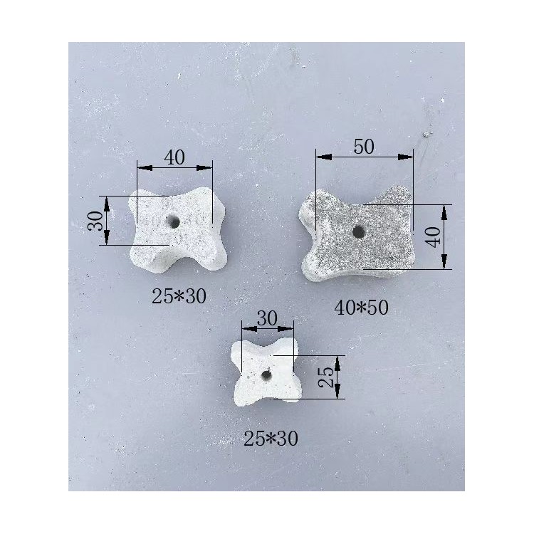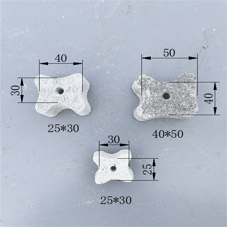 1、 用于樓面板底的鋼筋的保護,安裝時把墊塊的頭部直接夾持在鋼筋上,底部緊貼模板,每平方米安裝不少于4個墊塊(即每平方米的建筑面積不少于2個墊塊)