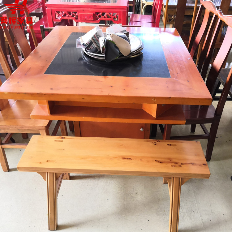 特點(diǎn):安全性高,易于保潔,一桌多用,耐高溫臺(tái)面?;疱?zhàn)雷佑蓪?shí)木多層板/大理石制成,可以有效的防止因高溫而產(chǎn)生的變形,經(jīng)過(guò)高溫碳化火燒處理后,還可以有效的防腐。火鍋店專用!