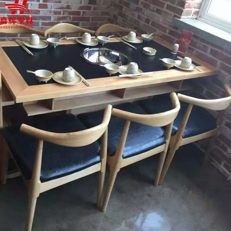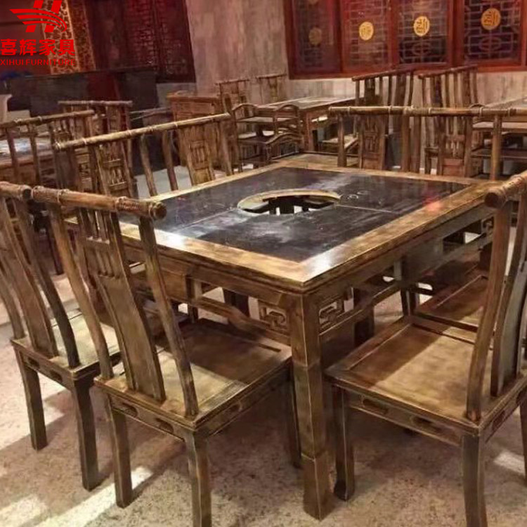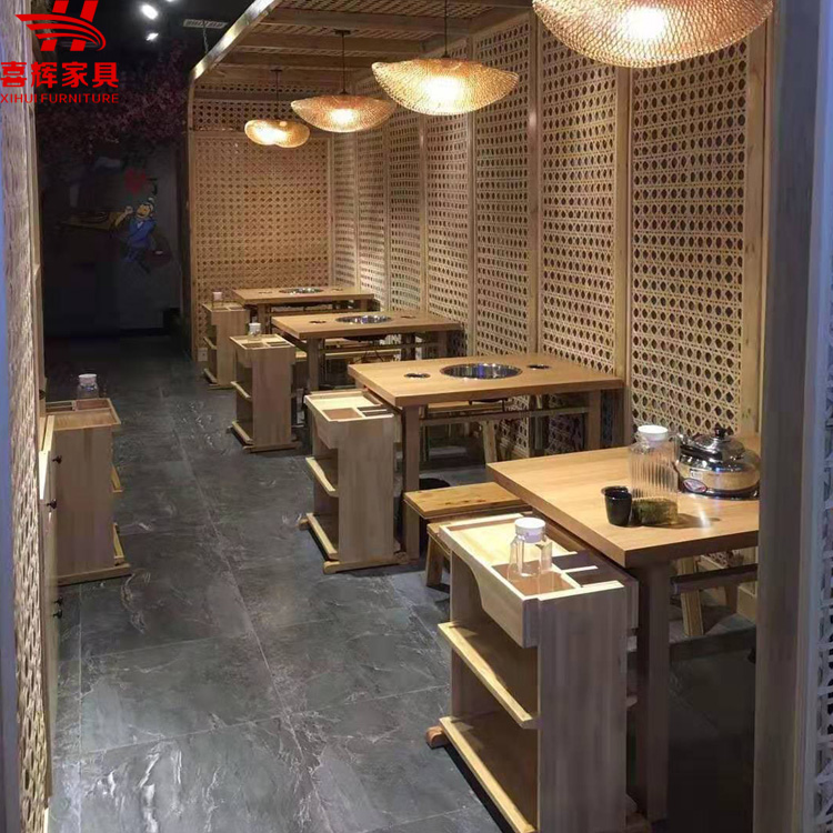 特點(diǎn):安全性高,易于保潔,一桌多用,耐高溫臺(tái)面?;疱?zhàn)雷佑蓪?shí)木多層板/大理石制成,可以有效的防止因高溫而產(chǎn)生的變形,經(jīng)過(guò)高溫碳化火燒處理后,還可以有效的防腐。火鍋店專(zhuān)用!