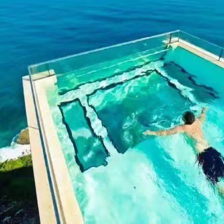 所謂的透明泳池,其實就是采用全透明玻璃做成的泳池。這種全新方式的泳池吸引了很多人的目光。而這種全透明玻璃,并非我們現(xiàn)實生活中常見的玻璃或者鋼化玻璃,而是厚度達到10CM--20CM的高透光亞克力玻璃。