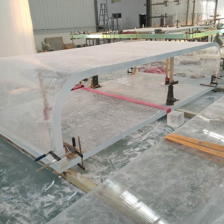 亞克力還具有良好的加工性能,可機械加工,可熱成型,可以通過注入特殊配方原液實現(xiàn)現(xiàn)場無縫拼接,而鋼化玻璃卻做不到這個,這樣能滿足更大尺寸透明整板要求,且不受運輸及空間條件影響。